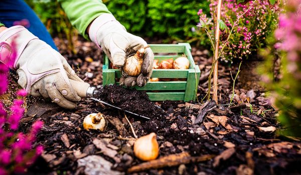 - Im Frühjahr können sich dann zum Beispiel Schneeglöckchen und Krokusse zu schönen Blütenteppichen entwickeln. Wer möchte, kann die Zwiebeln einfach auf den Boden werfen und dort dann unterheben. Sie sollten etwa fünf Zentimeter tief in die Erde gesteckt werden.