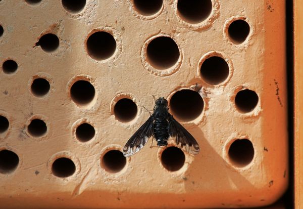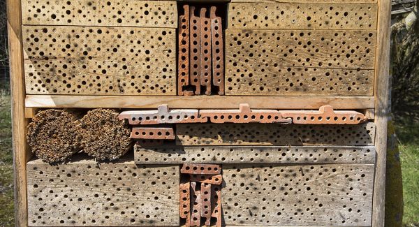 - Ein regelrechtes “Hotelhäuschen” wie auf dem Bild kann, aber muss nicht sein. Hauptsache, man findet ein geschütztes Plätzchen für die Nisthilfen.