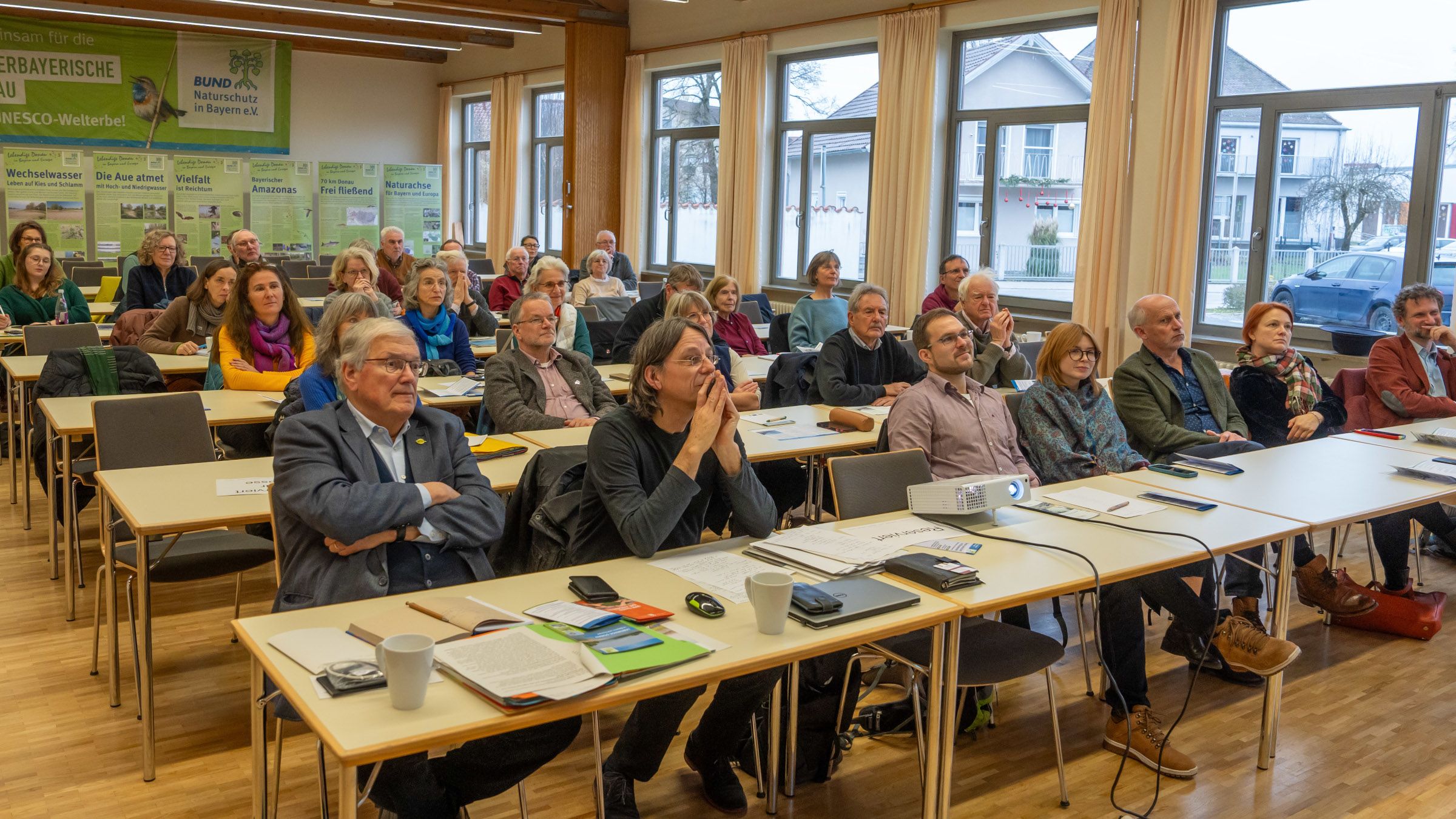 „Die Klimakrise vollzieht sich auch bei uns“ – mit diesem Satz eröffnete Hubert Weiger, Ehrenvorsitzender des BUND Naturschutz Bayern, den Themenschwerpunkt des Donaukongresses, zu dem der Verband am 7. und 8. Dezember bereits zum 33.-mal einlud. Zum ersten Tag in der Landvolkshochschule in Niederalteich mit insgesamt sechs Fachvorträgen konnte er zusammen mit Georg Kestel, dem Vorsitzenden der Kreisgruppe Deggendorf, und Mirjam Sigl als Vertreterin der Landvolkshochschule etwa 65 Teilnehmerinnen und Teilnehmer begrüßen. Namentlich hieß Kestel unter anderem MdB Marlene Schönberger und MdL Mia Goller (beide von den Grünen) willkommen; außerdem konnte er mit Stefan Radlmair, Annette Plank und Christiane Kotz Vertreter und Vertreterinnen der Naturschutzfachbehörden begrüßen, sowie zahlreiche Gäste, die zum teil aus ganz Bayern angereist waren. Das Publikum des Kongresses ist sowohl im BN, wie auch in zahlreichen befreundeten Verbänden und Gruppen wie dem Landesbund für Vogelschutz, den Naturfreunden Deutschlands und z. B. bei den Freundinnen der Donau aktiv. Kestel bedankte sich außerdem bei seinen Kolleginnen und Kollegen im Vorstand für die ehrenamtlich geleistete Vorbereitung des Kongresses und bei Irene Weinberger-Dalhof, die für den BN die Organisation leistet.