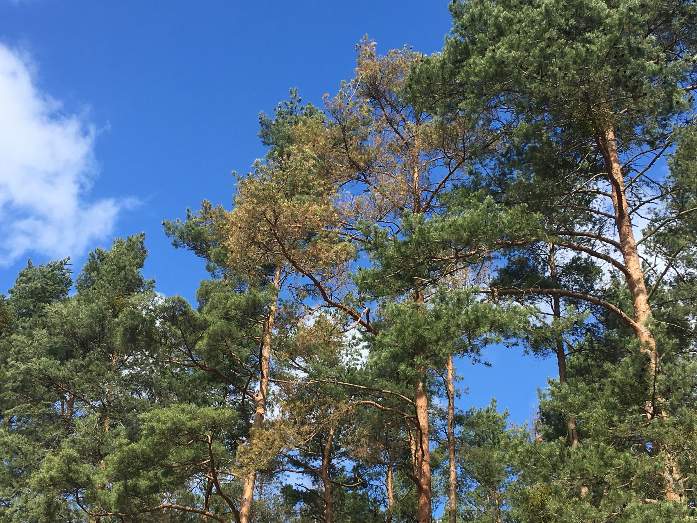 Im Rahmen einer Pressefahrt bei Rohr im Landkreis Roth verdeutlichte der BUND Naturschutz in Bayern (BN) die dramatischen Ausmaße, die das Kiefernsterben in Nordbayern angenommen hat. "Wir machen uns große Sorgen, weil in Nordbayern in den tieferen Lagen immer mehr Kiefern absterben", so Richard Mergner, Landesvorsitzender des BN. "Wir fordern von der Staatsregierung wirkungsvolle Klimaschutzmaßnahmen auf den Weg zu bringen. Ansonsten befürchten wir eine Neuauflage des Waldsterbens, wenn die Politik weiterhin versucht die Klimakrise auszusitzen." "Angesichts der absterbenden Kiefernwälder muss auf deutlich größeren Flächen eine Waldverjüngung hochwachsen können", so Ralf Straußberger, BN-Wald- und Jagdreferent. "Dazu brauchen wir mehr Förster zur Beratung der Waldbesitzer und weniger Rehwild, damit die nächste Waldgeneration ohne Zaunschutz aufwachsen kann. In den Waldumbauprojekten "Zukunftswälder" im nördlichen Landkreis Roth ist dies vorbildlich auf den Weg gebracht, muss aber in der Fläche noch deutlich ausgeweitet werden. Denn wenngleich dies die bayernweit größten Waldumbauprojekte im Privatwald sind, umfassen diese nur geringe Anteile an der Waldfläche.