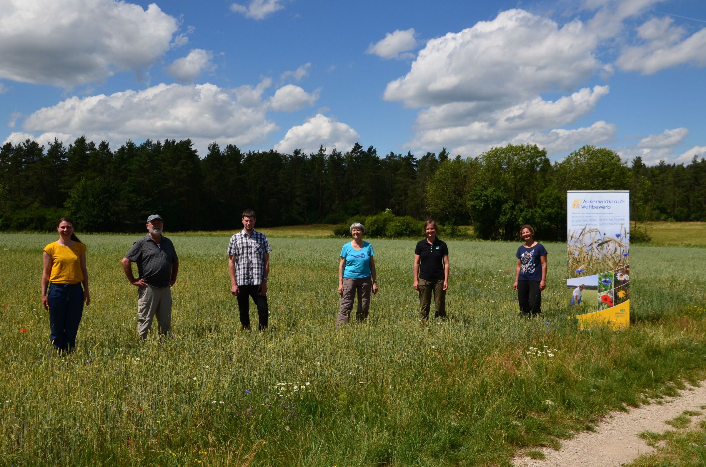 Otto Elsner, Pflanzenexperte, der die angemeldeten Flächen innerhalb des Projektes kartiert, erläutert: „Insgesamt wurden bei den Kartierungen mehr als 128 Arten gefunden.“ Der Acker von Landwirt Markus Haslbeck bei Eggolsheim, Landkreis Forchheim, steht zum Zeitpunkt der Feldbesichtigung am 1. Juli 2020 noch gut da, so dass Botaniker Elsner den Anwesenden einige Funde zeigen kann. Über den sehr seltenen Ackerkohl freut sich Landwirt Haslbeck besonders, da diese Art in Bayern stark gefährdet ist. Die Siegerbetriebe werden am 16. September im Wettbewerbsgebiet geehrt.