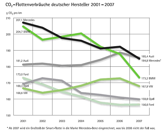 Die Doppelstrategie von BMW das Gewicht und die Motorleistung – 2007 waren es durchschnittliche Zuwächse von 13,5 kg und 6,5 kW - weiter zu erhöhen, werde mittelfristig nicht aufgehen. Die Effizienzgewinne werden abnehmen. „Auch BMW wird zur Erreichung des 2012er Grenzwertes von 120 g CO2 pro km nicht um ein Downsizing seiner Flotte herumkommen. D.h.: Kleinere Motoren, niedrigere Gewichte, ein höherer Verkaufsanteil kleinerer Pkw. Nach 2010 wird das bei BMW auf der Tagesordnung stehen. Neue Modelle wie der X6 zeigen aber in eine völlig falsche Richtung. Das kann nicht die Zukunft des Automobils sein.“