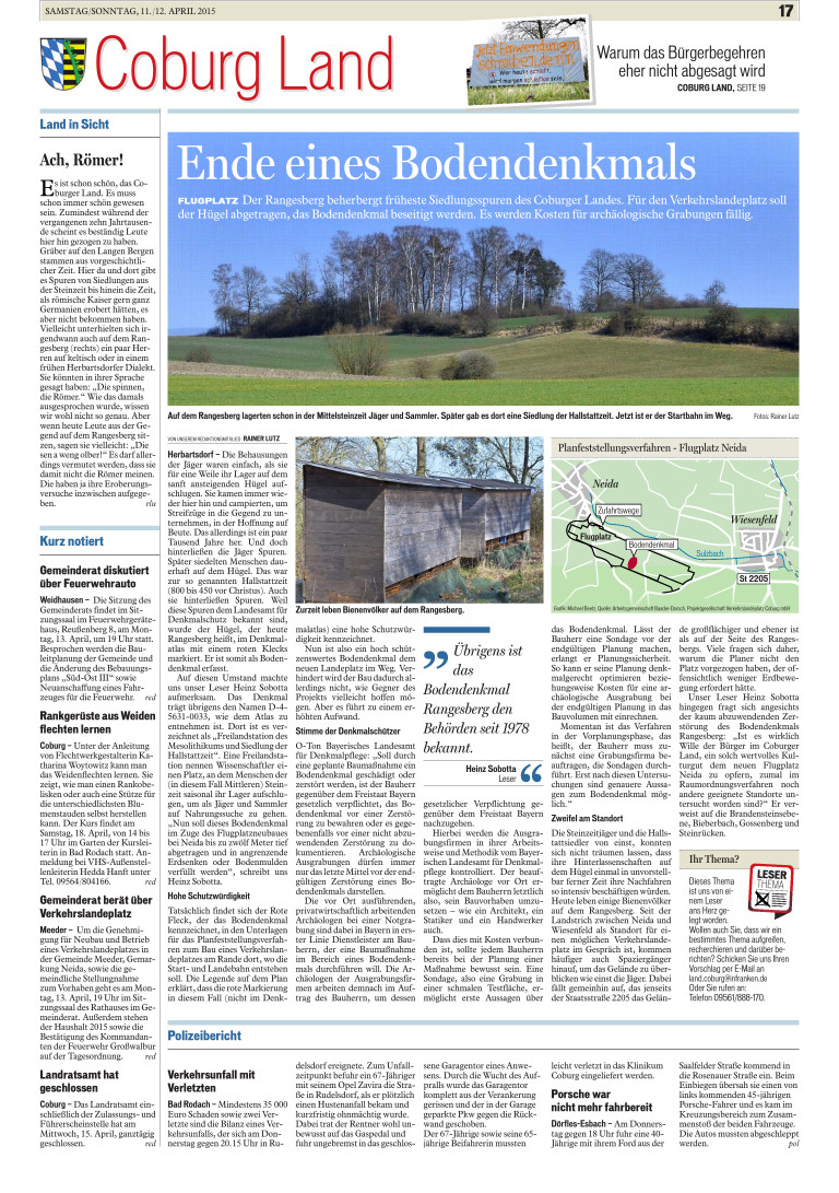 Der BN-Landesverband hat am 4. Mai 2015 beim Luftamt Nordbayern fristgemäß seine Einwendungen gegen den geplanten Neubau eines Verkehrslandeplatzes Coburg bei Neida abgegeben.