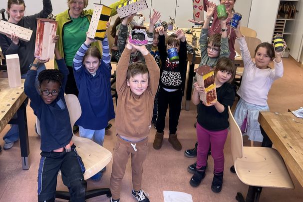 Bauen von Insektenhotels im Werkraum der GMS Ergolding