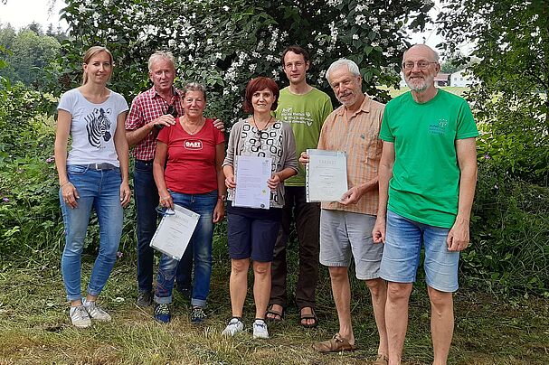 Die Vorstandschaft der Ortsgruppe Oberes Vilstal traf sich beim Anwesen von Manfred Reuther auf dessen schönem, naturbelassenen Grundstück.
