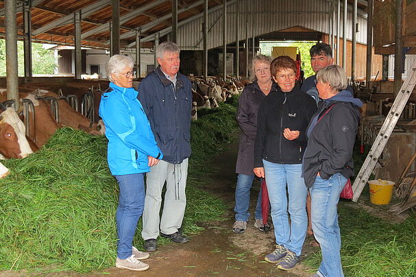 Liebenstadt – Aufmerksam beobachten die Kühe, wie Martin Harrer eine Fuhre frisches Gras im Stall vor ihnen verteilt. Rosalinde Harrer steht mit uns,…