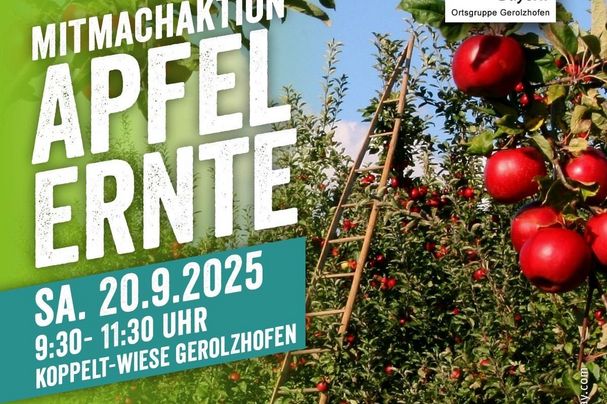 Am Samstag, 20. September, ab 9.30 Uhr, organisiert die Bundjugend Gerolzhofen eine gemeinsame Apfelernte auf der Koppelt-Wiese.