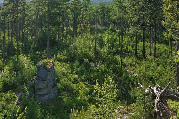 Welche Baumarten können im Steinwald dem Klimawandel widerstehen? Der Förster Eckhard Deutschländer zeigt Beispiele auf seiner Führung.