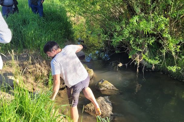 Rund 20 Personen trafen sich an einem Abschnitt des Unkenbachs, um die Gewässergüte zu bestimmen.