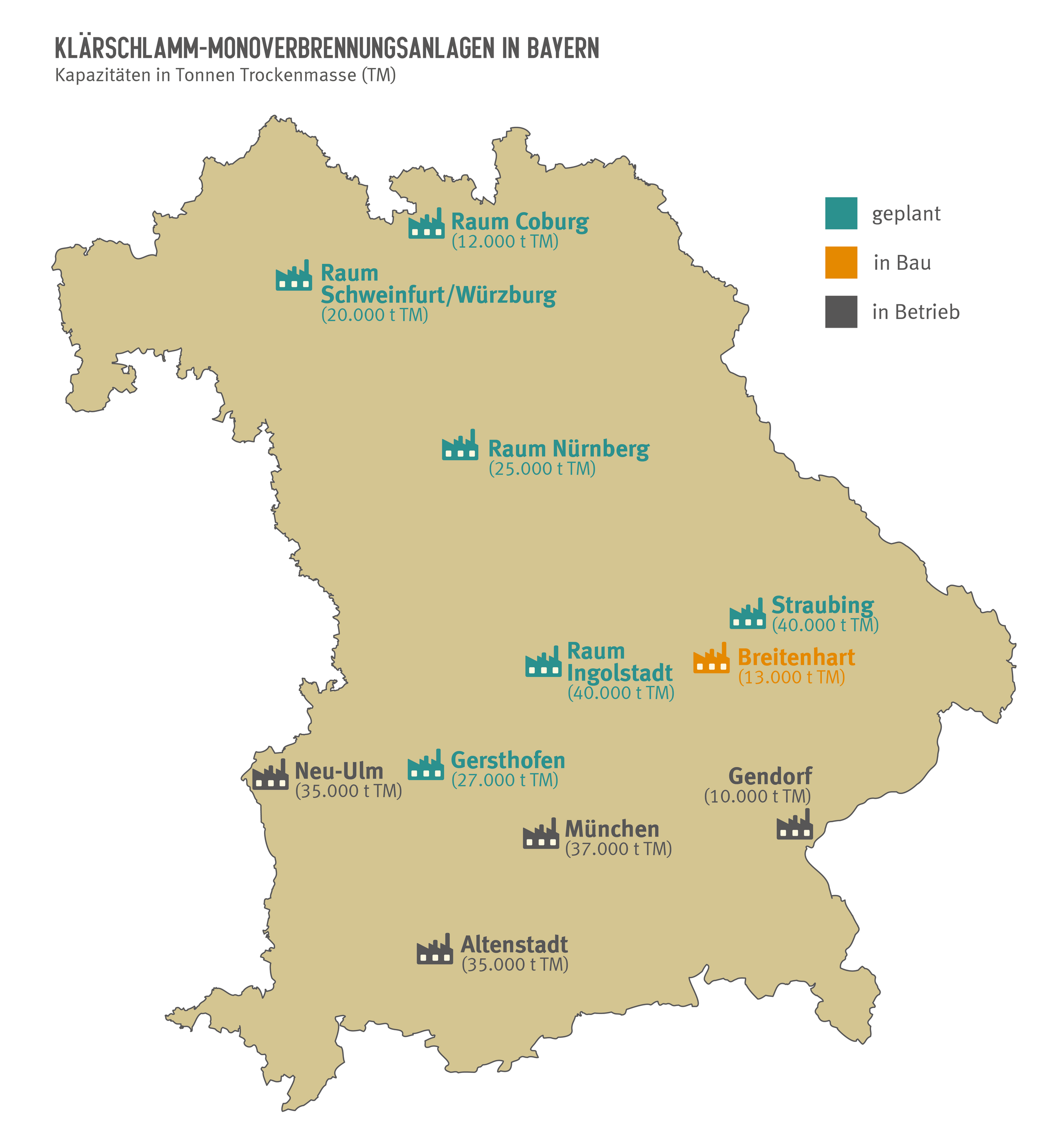 Ausgelöst von der Novelle der Klärschlammverordnung (AbfKlärV) im Jahr 2017, die Fristen für ein Recycling des im Klärschlamm enthaltenen Phosphors setzt und die bodenbezogene Verwertung des Klärschlamms für große und sehr große Kläranlagen spätestens ab 2032 verbietet, war in den letzten Jahren eine verstärkte Planungs- und Bautätigkeit im Bereich von Klärschlamm-Monoverbrennungsanlagen in Bayern zu beobachten. Der BN hält diese Entwicklung für falsch, eine aktuelle Studie des Beratungsbüros Björnsen aus Koblenz im Auftrag des BN unterstreicht diese Position.