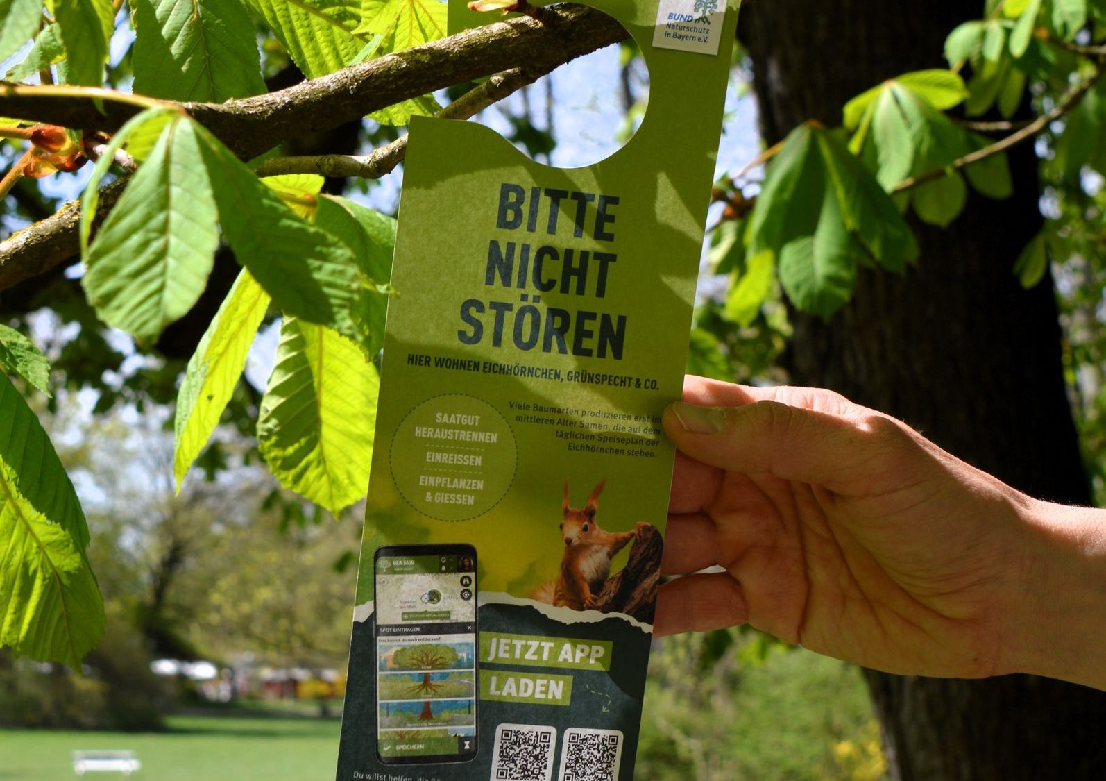 Die BN-Kreisgruppen sind zum Tag des Baumes am 25. April mit Baumanhängern ausgestattet worden. Die Anhänger, um die Stadtbaumapp zu bewerben, bestehen aus biologisch abbaubarem Papier und enthalten Wildblumensamen, sodass Passant*innen sie gerne mitnehmen können. Alle übrigen Anhänger werden einige Tage nach Projektstart wieder eingesammelt.