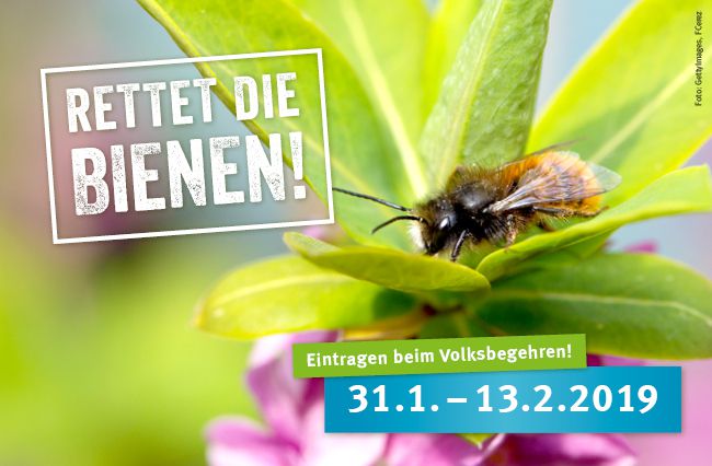 Der BUND Naturschutz ruft dazu auf, das Volksbegehren "Rettet die Bienen und die Artenvielfalt" zu unterstützen. Nur wenn sich bis zum 13. Februar zehn Prozent der bayerischen Wahlberechtigten (= fast eine Million Menschen) in den Rathäusern für das Volksbegehren eintragen, können wir alle in einem anschließenden Volksentscheid über ein besseres Gesetz abstimmen.