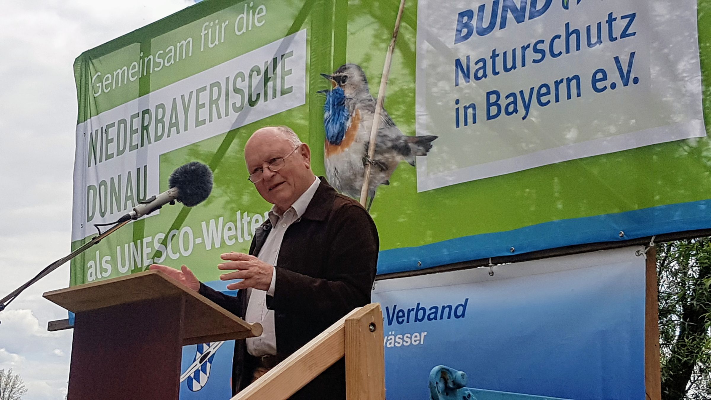 An diese Aussage knüpfte Hubert Weiger, der Vorsitzende des BUND Naturschutz, an: Im niederbayerischen Donauraum fänden sich die ältesten Ackerbaukulturen Mitteleuropas, aber auch „fantastische Schöpfungen der Natur wie die Mühlhamer Schleife oder das Isarmündungsgebiet“. Welterbe zu sein, bedeute aber nicht, eine Käseglocke über die Region zu stülpen, betonte Weiger. Noch ein weiteres Thema treibt die Naturschützer um: der ökologische Hochwasserschutz. Hier sieht der der BN-Vorsitzende die Gesellschaft vor einer gewaltigen Aufgabe. Nach Jahrhunderten der „Wasseraustreibung aus der Landschaft“, so Weiger, sei es jetzt an der Zeit für Wiedergutmachung an den Fließgewässern und für Wasserrückhaltung in der Landschaft. Hier brauche es ein Konzept unter Einbeziehung der Land- und Forstwirtschaft, das bei den kleinsten Bächen anfange. Das große Projekt des „Blauen Bandes Deutschland“ stelle einen Paradigmenwechsel in die richtige Richtung dar, freute sich Hubert Weiger. Rund 2800 Kilometer Flussabschnitte in Deutschland sollen damit soweit wie möglich wieder einer natürlichen Entwicklung zugeführt werden.