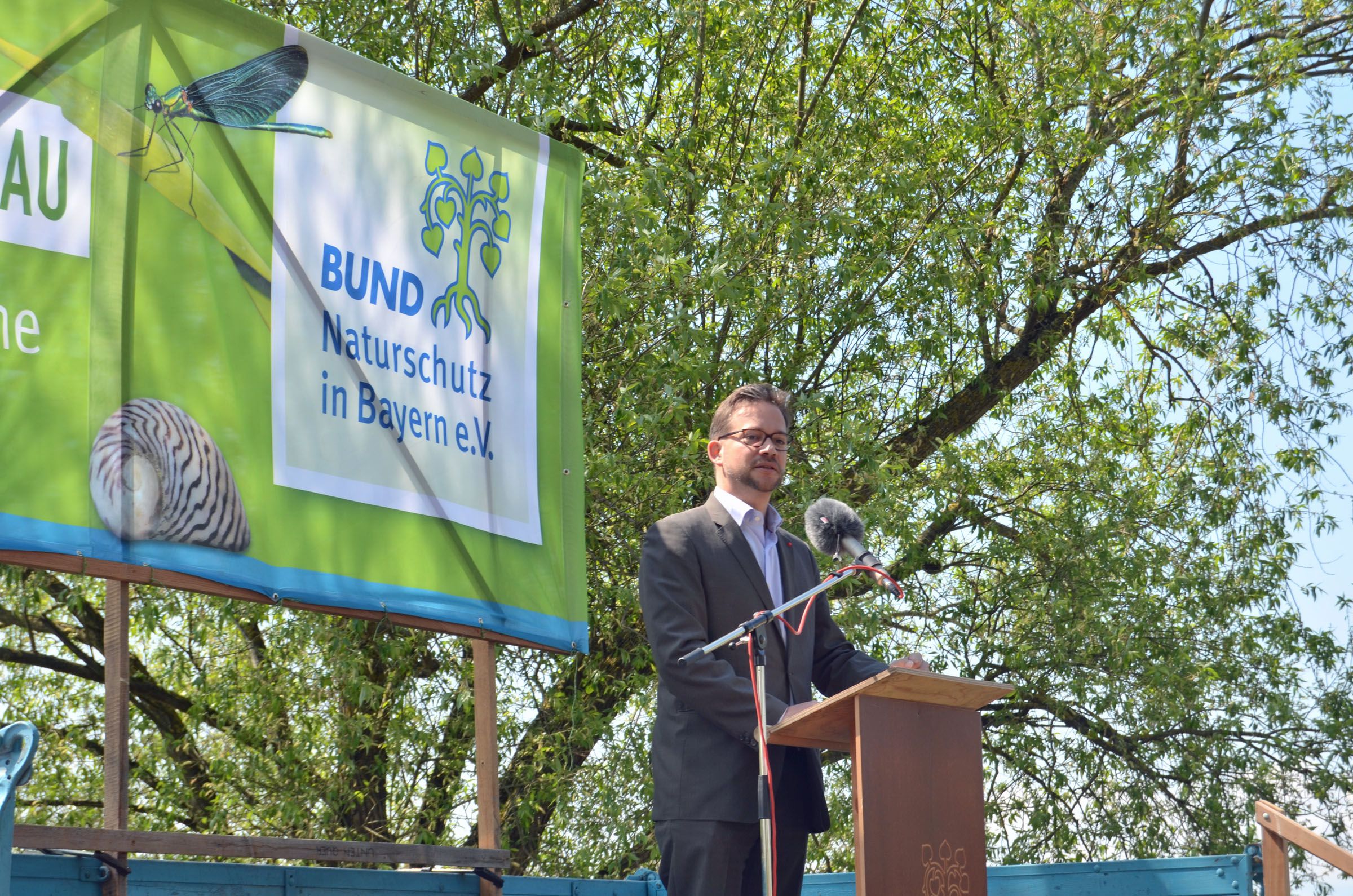 Zu Gast beim Fest an der Donau war in diesem Jahr Florian Pronold (SPD), Staatssekretär im Bundesumweltministerium. Er bedankte sich bei all den Menschen, die durch ihr jahrelanges Engagement dazu beigetragen hätten, den letzten frei fließenden Abschnitt der Donau zwischen Straubing und Vilshofen vor einer Verbauung mit Staustufe und Kanal zu bewahren. Aber auch der jetzige Ausbauplan, die sogenannte Variante A, sei ein Kompromiss und müsse so umweltverträglich wie möglich gestaltet werden. Pronold sprach von einem „Reinheitsgebot für Flüsse“: „Die größte Gefahr für unser Wasser geht derzeit von der Düngung aus.“ Hier müsse künftig mehr unternommen werden.