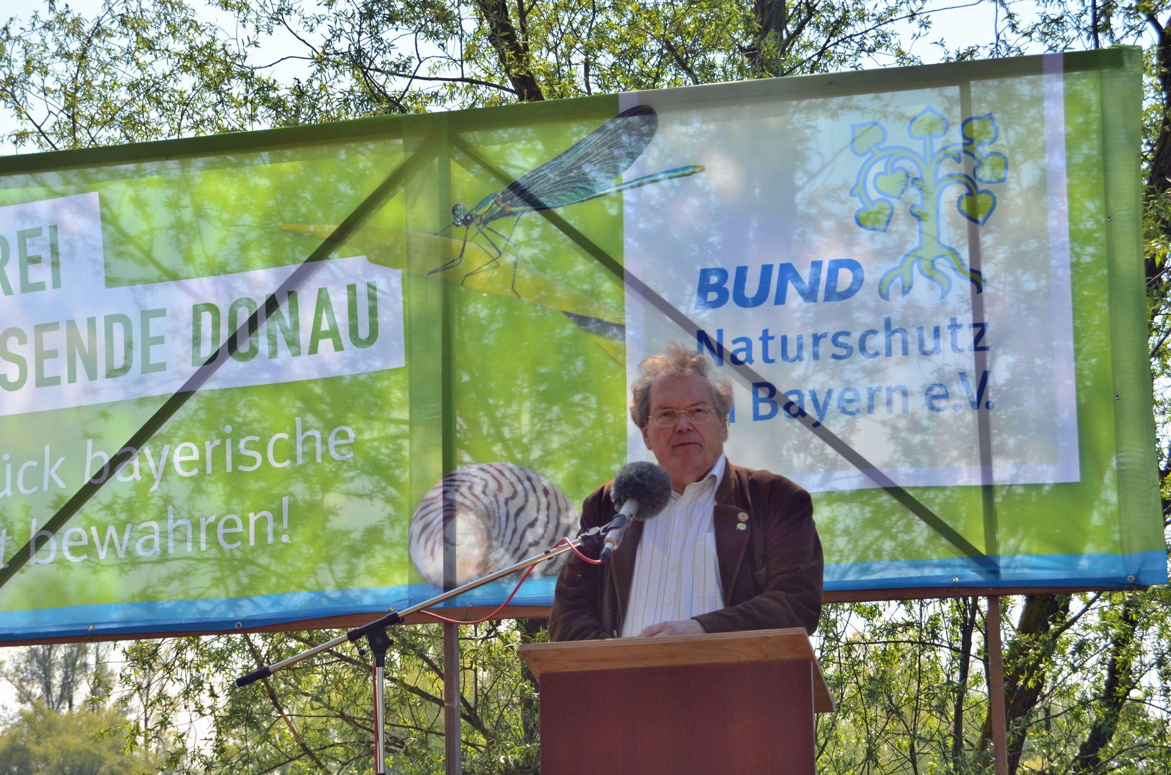 Der Vorsitzende des BUND Naturschutz, Hubert Weiger, freute sich, dass im Bundesverkehrswegeplan kein Donauausbau mit Staustufe und Kanal mehr enthalten sei. „Wir haben damit einen wichtigen Zwischenerfolg erzielt, den schon niemand mehr für möglich gehalten hat“, so Weiger. Er blickte aber auch in die Zukunft und appellierte im Hinblick auf die Umsetzung von Variante A an das Umweltministerium: „Helfen Sie uns gegen die Lobby für Schifffahrt und Wasserstraßenbau!“ An der Zerstörung von Natur könne leider mehr verdient werden als an deren Erhaltung, so Weiger.