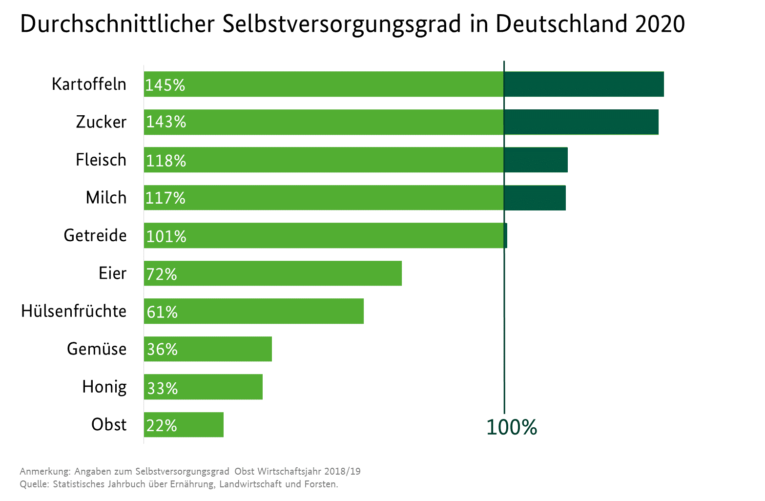 Grafik zum durchschnittlichen Selbstversorgungsgrad in Deutschland 2020 hier zum download