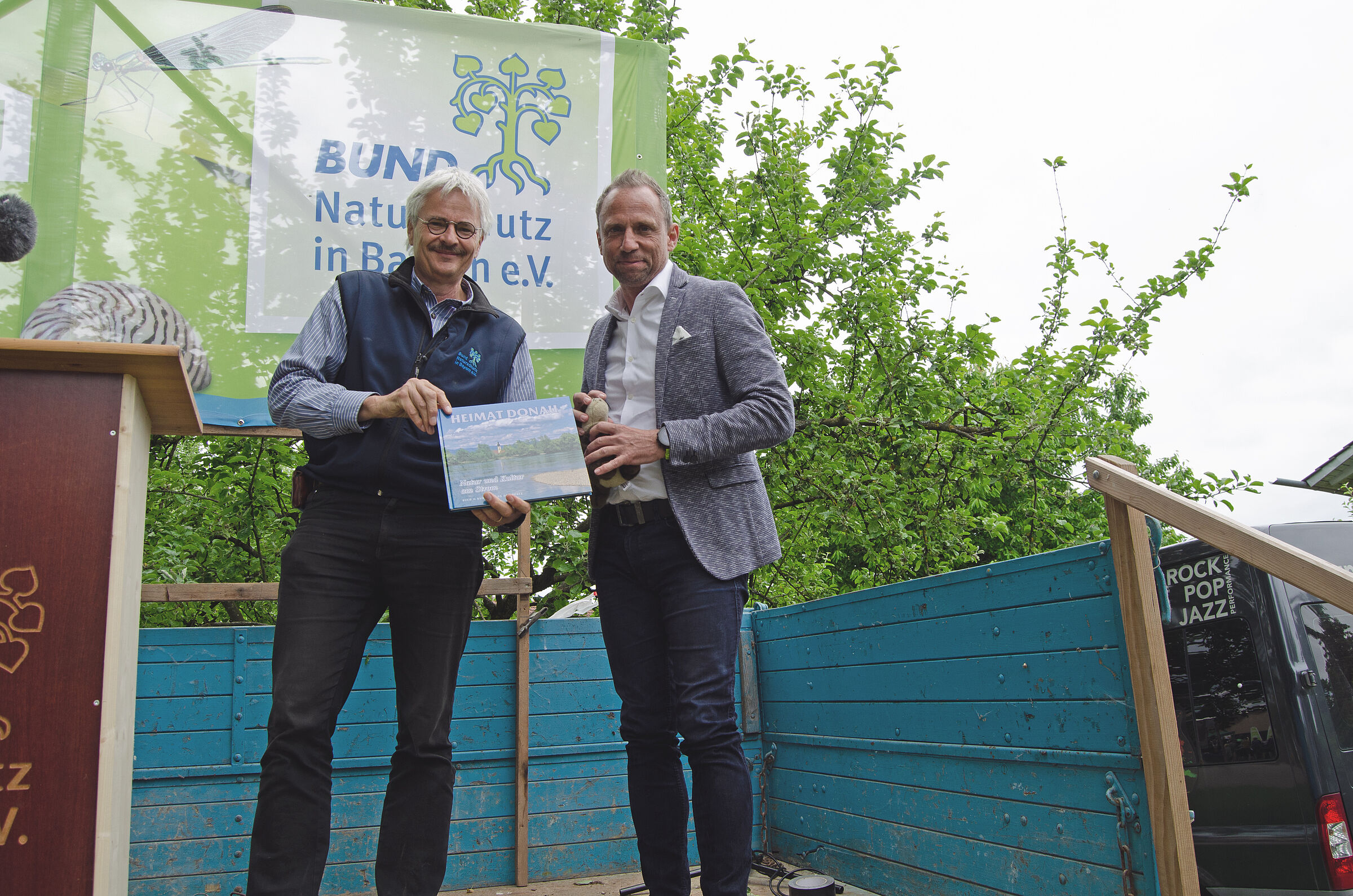 Der BUND Naturschutz und die Spielvereinigung Niederalteich richteten das Fest wieder gemeinsam aus. Die Spielvereinigung feierte bei dieser Gelegenheit ihr 75-jähriges Bestehen. Weil auch der BN-Ehrenvorsitzende Hubert Weiger kürzlich seinen 75. Geburtstag feiern konnte, gab es für ihn ein Fanpaket von SpVgg-Vorstandsmitglied Günther Schneider.