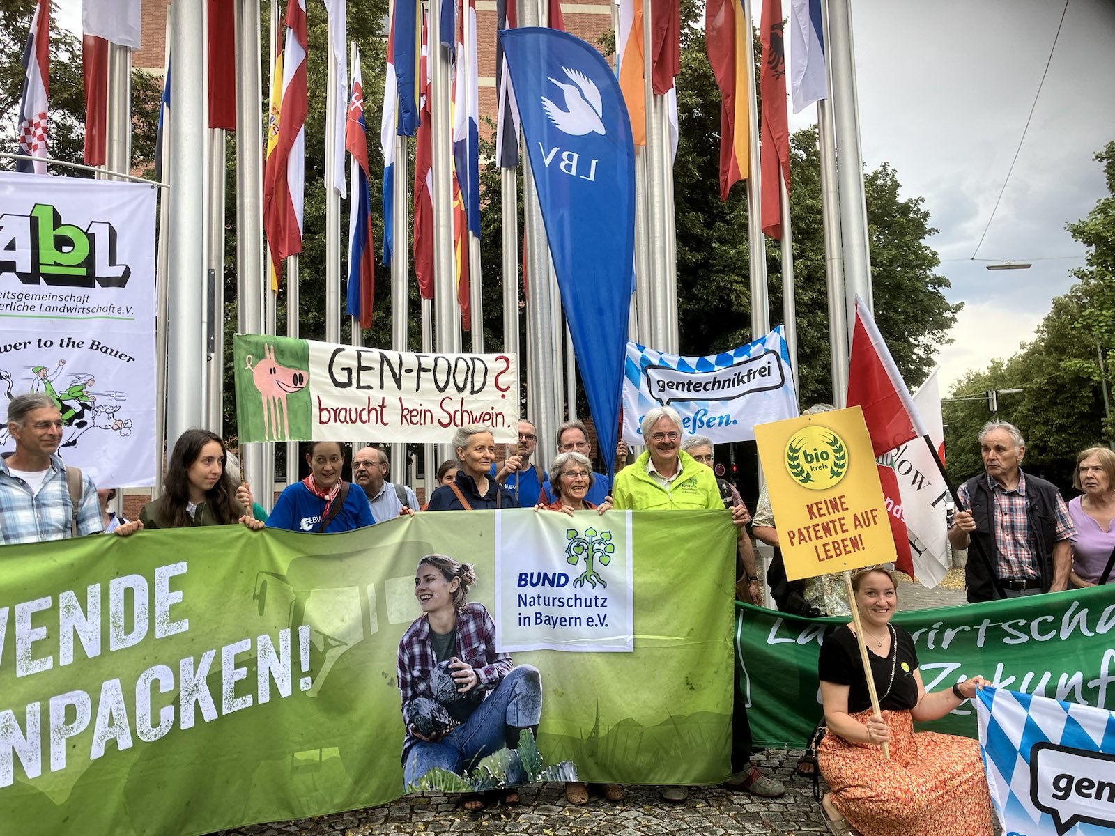 Sogenannte Neue Gentechniken (NGT) sollen für den Einsatz in der Landwirtschaft freigegeben werden - ohne Prüfung, ohne Zulassung, ohne Kennzeichnung. Dabei konnte die Gentechnik-Lobby bisher keines ihrer Versprechen einlösen. Darüber hinaus ist NGT stets mit Patentierungen verknüpft, die der Vielfalt der Saatgutentwicklern schadet und einige wenige große Hersteller begünstigt.Gegen diese Politik protestierte am Montagvormittag (10.07.2023) ein breites Bündnis für eine gentechnikfreie Natur- und Landwirtschaft vor dem Europäischem Patentamt in München.