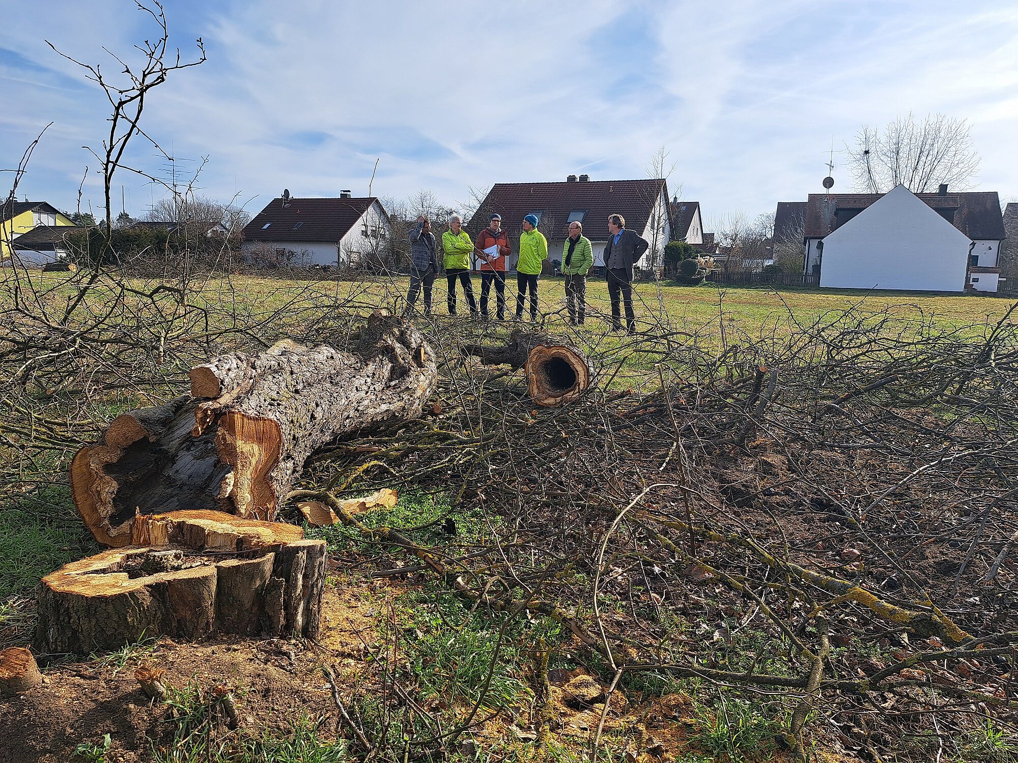 Den Abschluss der Tour bildete die Besichtigung des geplanten und umstrittenen Wohnbaugebiets am Ortsrand von Oberschöllenbach, dem westlichsten Ortsteil Eckentals. Mit dem Bebauungsplan Oberschöllenbach Nr. 11 „Westlich der Oberschöllenbacher Hauptstraße“ sollen im Außenbereich, unmittelbar angrenzend an das Vogelschutzgebiet Nürnberger Reichswald, ca. 3,3 ha landwirtschaftlich genutzte Flächen, teilweise mit älterem Obstbaumbestand, geopfert werden.