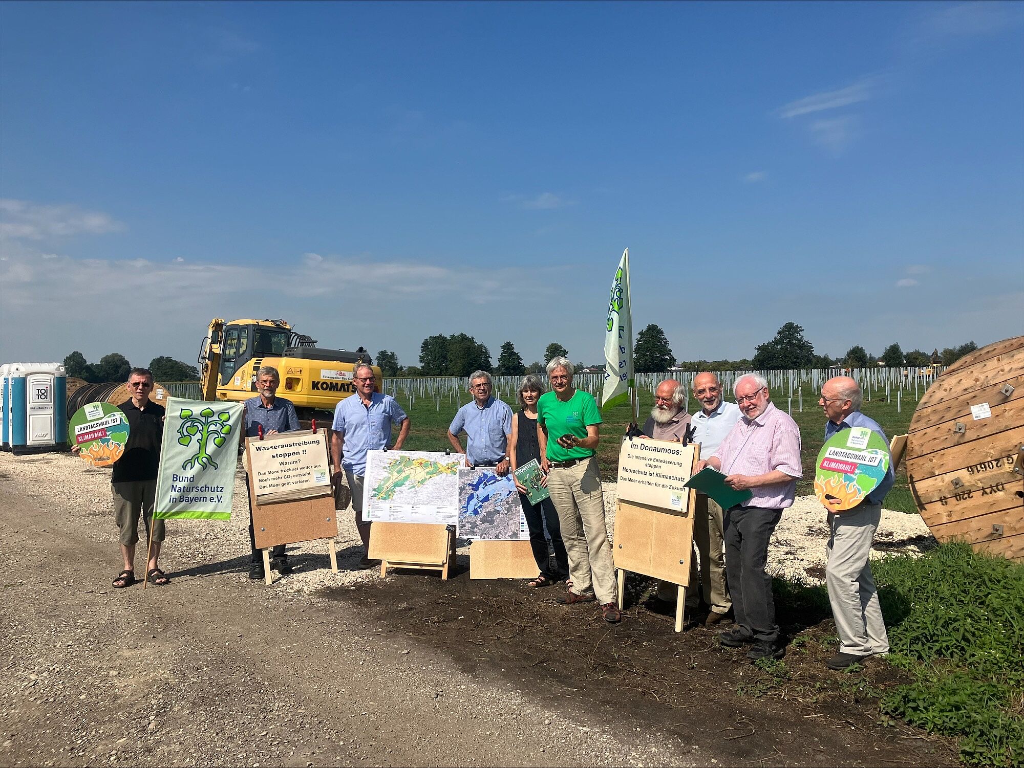 „So erfreulich der Ausbau der Solarenergie an sich ist: Mit Freiflächen-Photovoltaik auf zwei bis drei Prozent ist das Potenzial im Donaumoos mehr als ausgereizt“, erklärt Richard Mergner, Vorsitzender des BUND Naturschutz in Bayern e. V., bei einem Ortstermin in Brunnen. „Niedermoorböden sind nicht als Standort für PV geeignet, wenn sie sich zur Moor-Renaturierung eignen. Im Donaumoos werden jährlich ca. 415.000 Tonnen CO₂-Äquivalente ausgestoßen. Das Moos muss seinen Beitrag zum Klimaschutz dadurch leisten, dass durch das Anheben des Grundwassers die Zersetzung des Moorbodens in Treibhausgase gestoppt wird. Auch für die Wiederherstellung von artenreichen moortypischen Lebensräumen ist das eine zentrale Voraussetzung. Es bringt uns im Kampf gegen die Klimakrise nicht weiter, wenn im Moor auf der Oberfläche klimaneutraler Strom erzeugt wird, während im Boden der Torfkörper weiter zersetzt wird und klimaschädliche Gase ausstößt.“