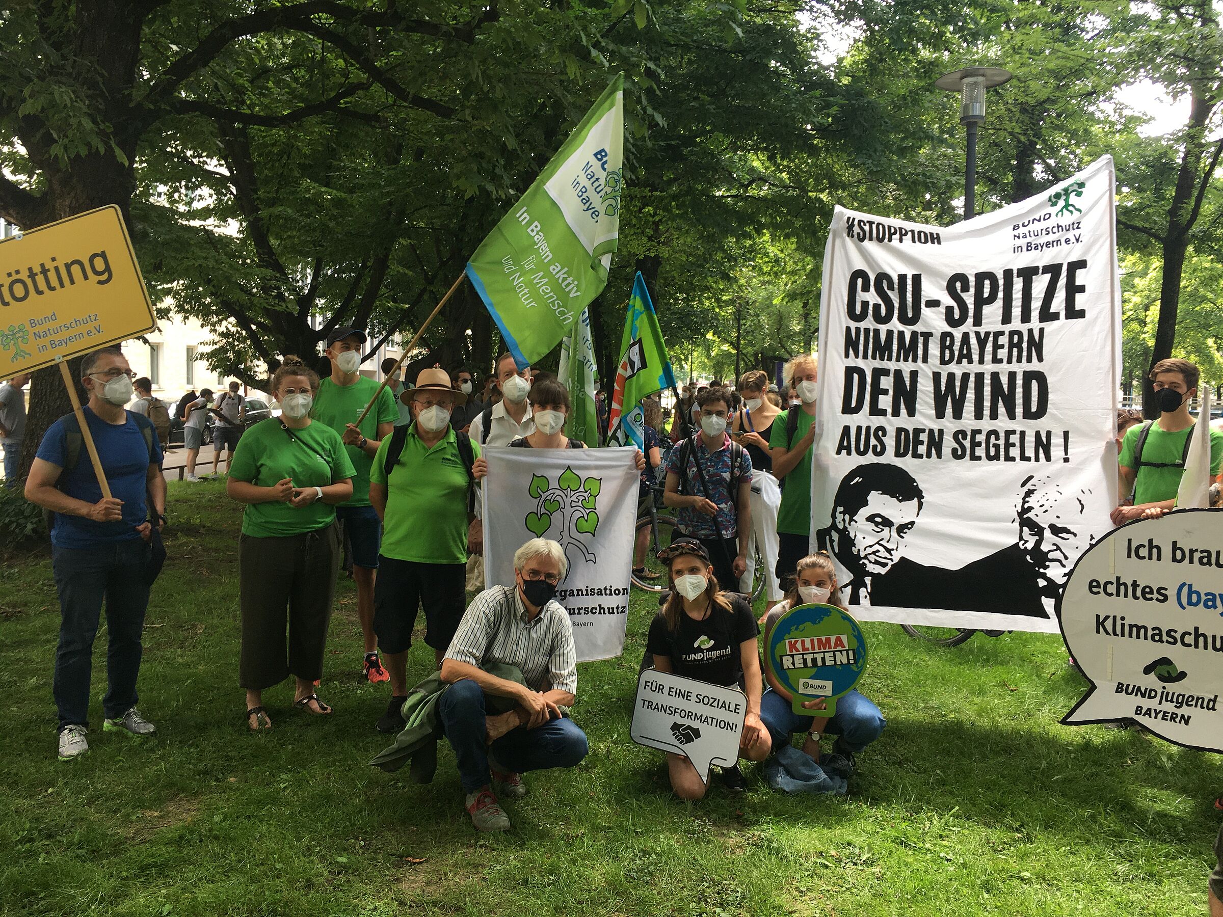 Julia Dade, Vorstandsmitglied der Jugendorganisation BUND Naturschutz, erklärt: „Markus Söder hat mal wieder nur Luftschlösser gebaut. Seine Regierungserklärung vom vergangenen Mittwoch war unkonkret und ausweichend. Wir brauchen echte Klimaschutzmaßnahmen in Bayern, und zwar sofort. 10H abschaffen, alle geplanten Straßenbauprojekte stoppen und das Geld stattdessen in den Ausbau von ÖPNV und Fahrradinfrastruktur stecken, ein Tempolimit und eine Photovoltaik-Pflicht einführen. Das wäre ein Anfang.“ An der Demonstration nahmen teil: Fridays for Future Bayern, BUND Naturschutz Bayern, LBV, Gregor Louisoder Umweltstiftung, Parents For Future, Scientists For Future, BÜNDNIS 90/DIE GRÜNEN Bayern, SPD Bayern, ÖDP Bayern und zahlreiche weitere Organisationen und Verbände. Auftakt der Demonstration war vor der Staatskanzlei, der Zug führte über den Franz-Josef-Strauß-Ring über die Maximilianstraße zum Maxmonument und von dort zum Friedensengel.