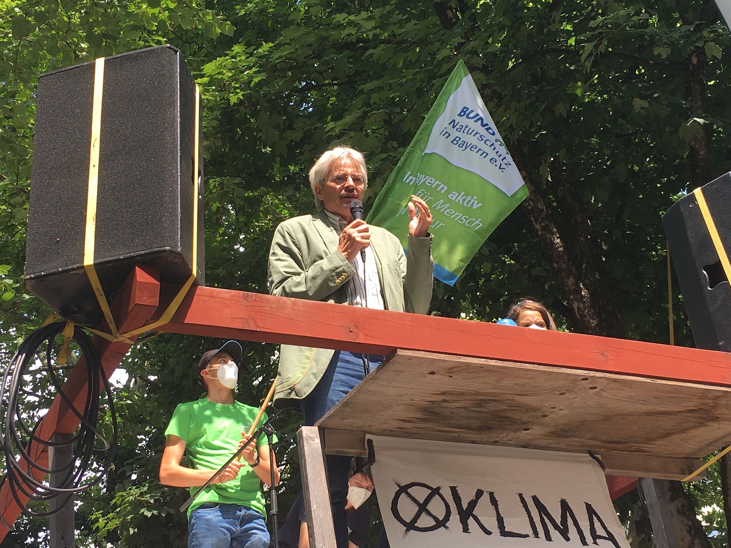 Zu wenig, zu vage, zu unverbindlich: Die bayerische Staatsregierung betreibt eine mangelhafte Klimaschutzpolitik. Darin waren sich die zahlreichen Teilnehmer der großen Klimademo in München an diesem Freitag einig. BN-Vorsitzender Richard Mergner war einer der Redner auf der Auftaktkundgebung vor der Staatskanzlei. „Die Erde brennt! Das verheerende Hochwasser der letzten Tage ist eine Folge der stetigen Erhitzung unseres Planeten. Anderswo haben die Menschen im Moment mit nie dagewesenen Hitzewellen zu kämpfen. Wenn wir nicht jetzt handeln, werden sich unsere Lebensgrundlagen in nicht allzu ferner Zukunft massiv verschlechtern, für nachfolgende Generation große Teile der Erde womöglich unbewohnbar werden. Die Zeit des Zauderns ist vorbei, Bayern muss mit gutem Beispiel vorangehen und einen konsequenten Klimaschutz mit verbindlichen Maßnahmen und klaren Zielen vorantreiben. Das bisherige Klimaschutzgesetz der Staatsregierung und die blumigen Ankündigungen von Ministerpräsident Markus Söder reichen nicht aus. Statt sich als vermeintliches Klimaschutz-Vorbild zu loben, muss Söder den Worten nun endlich Taten folgen lassen!“, so Mergner.