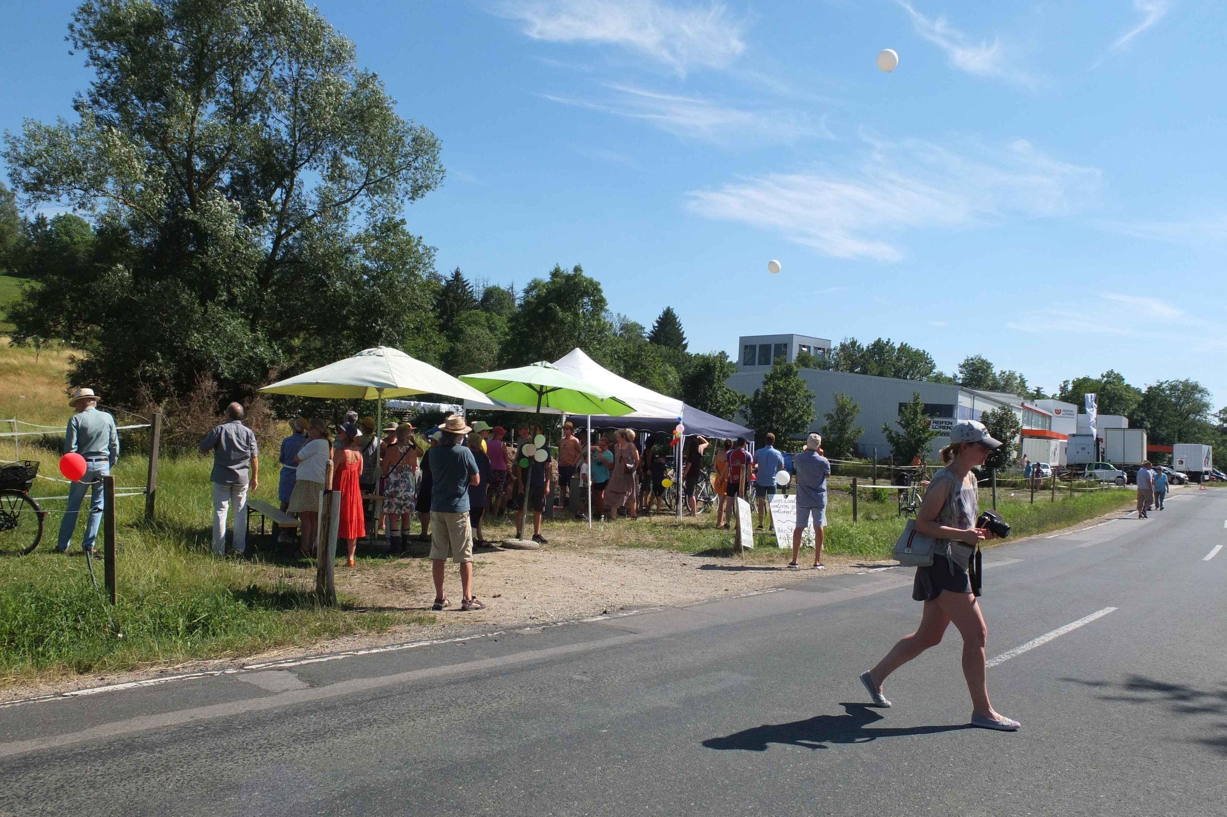 Etwa 100 Bürgerinnen und Bürger versammelten sich am geplanten Bauplatz und visualisierten den Eingriff, indem sie mit Helium gefüllte Ballons in 19 m Höhe aufsteigen ließen (die Höhe des geplanten Produktionsturms). Außerdem wurden die Länge und die Breite des Bauplatzes mit einer Kette aus Ballons (Material: Naturkautschuk, kein Plastik) deutlich gemacht.