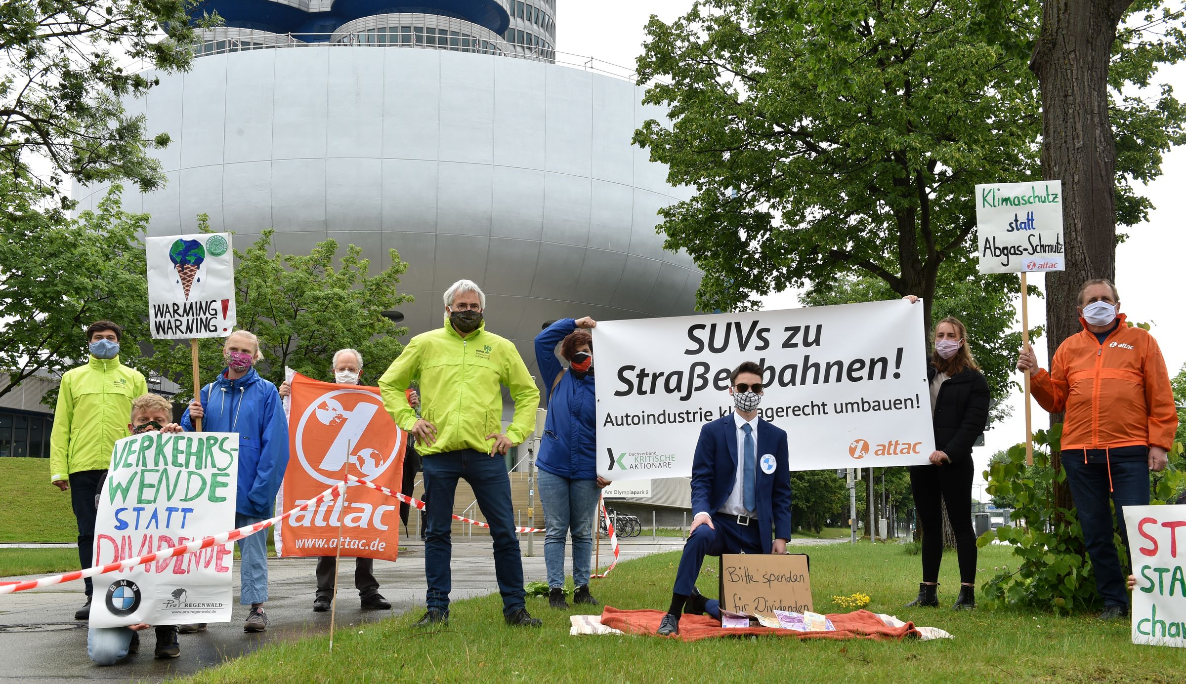 Fotos der Aaktion vor der BMW-Hauptversammlung: attac.de/bmw-hauptversammlung-2020