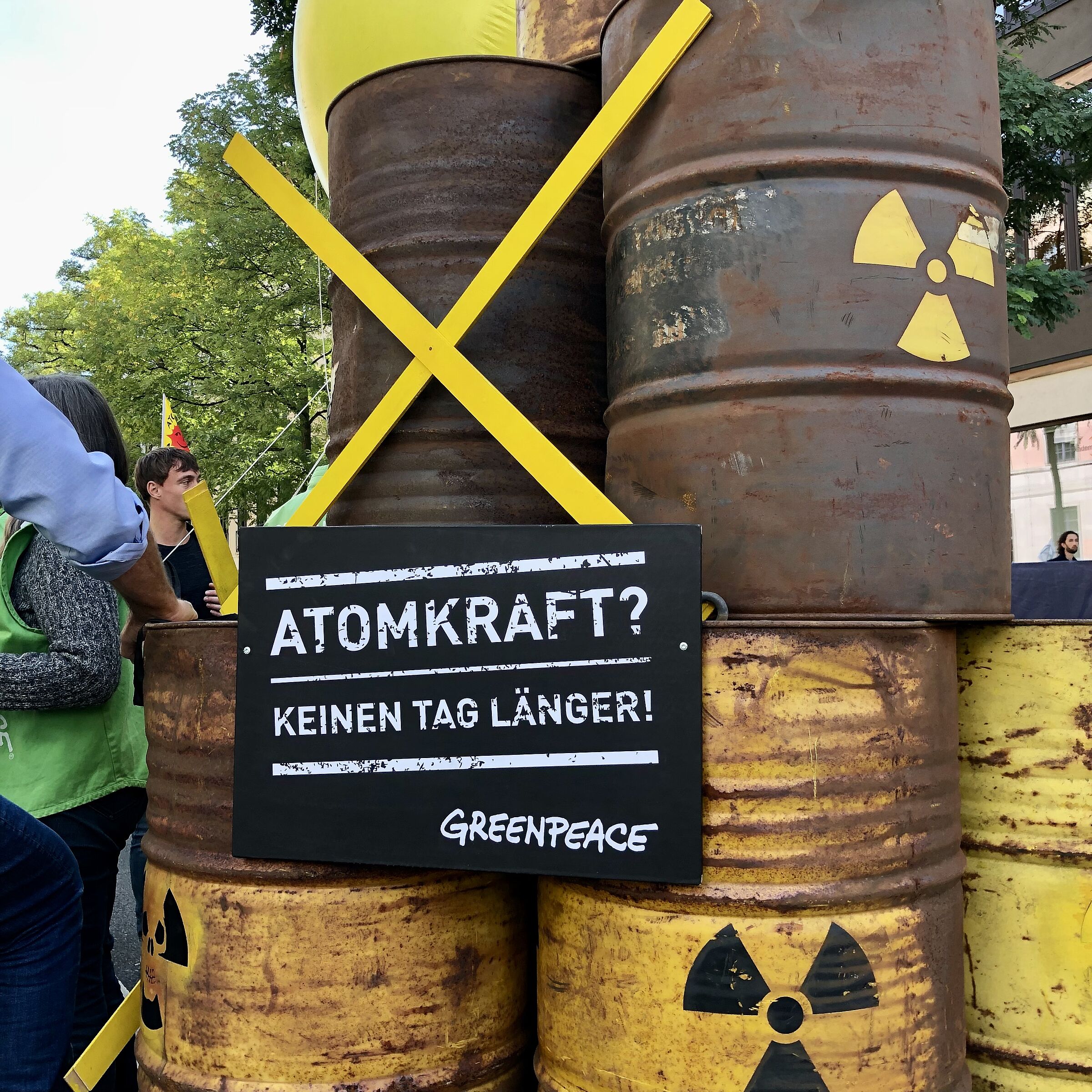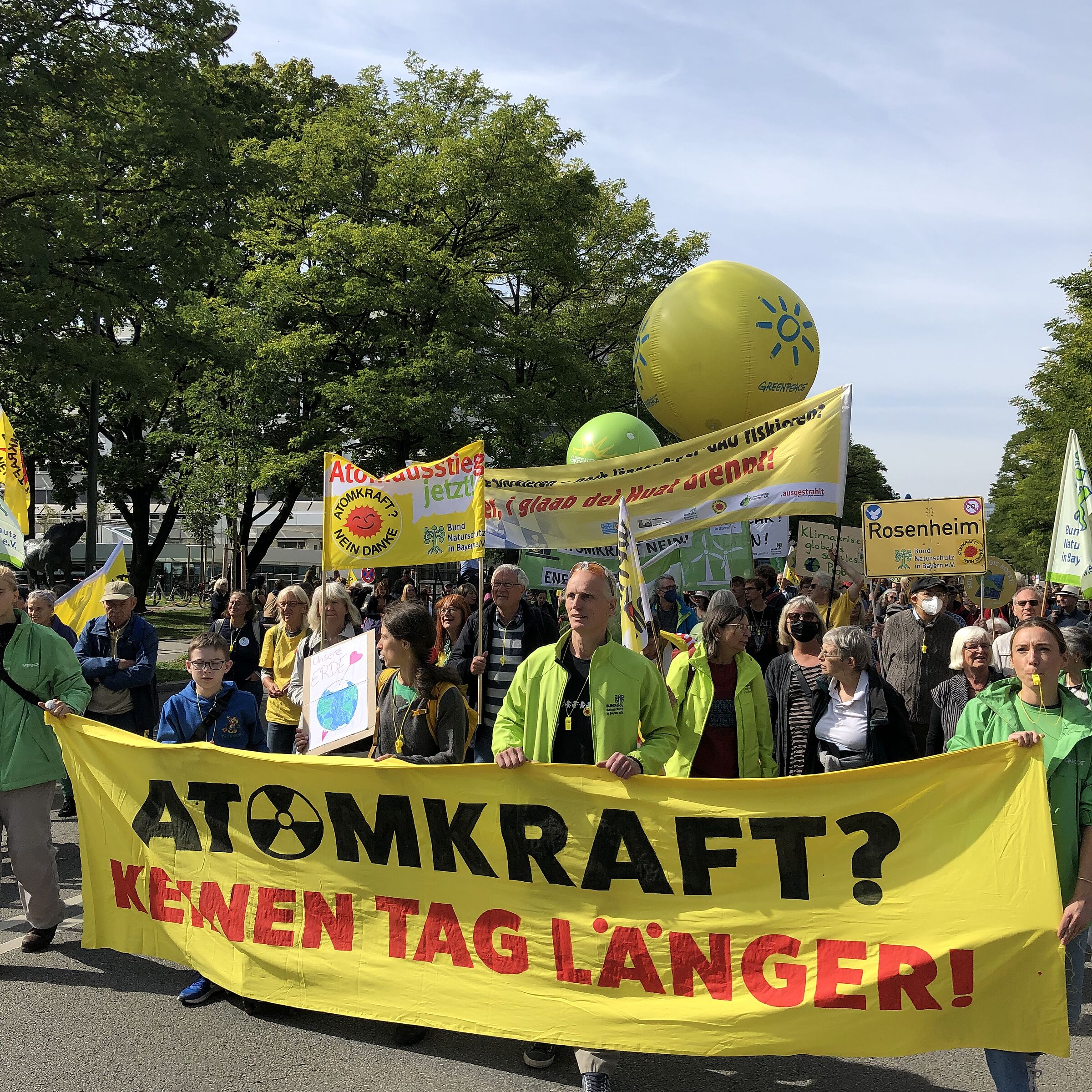 Atomkraft ist nicht sauber, nicht billig, nicht umweltfreundlich, nicht zuverlässig und auch nicht nötig. Das sahen offensichtlich auch viele Menschen in den anderen Demo-Blöcken so – es gab viel Zuspruch für den Auftritt mit der bewährten Anti-Atom-Sonne, mit Bannern, Transparenten und Atommüll-Fässern. Gemeinsam mit Greenpeace, dem Umweltinstitut und Fridays for Future, mit denen dieser Block auf die Beine gestellt wurde, und vielen anderen Menschen vertritt der BUND Naturschutz auch weiter die Forderung, die am Freitag auf dem Front-Transparent zu lesen war: „Atomkraft? Keinen Tag länger!“