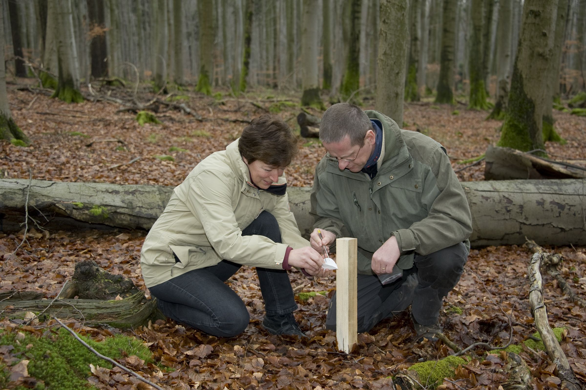 Um an die Haare für die Genproben zu gelangen, kommt die sogenannte Lockstockmethode zum Einsatz. Lockstöcke sind sägeraue Dachlattenstücke, die im Wald an geeigneten Stellen in den Boden geschlagen werden. Sie werden mit Baldrian besprüht, dessen Geruch Katzen so fasziniert, dass sie zu den Lockstöcken kommen und sich daran reiben. Die dabei hängenbleibenden Haare werden bei den wöchentlichen Kontrollen von den Ehrenamtlichen eingesammelt. Derzeit sind ca. 750 Lockstöcke in nordbayerischen Wäldern aufgestellt. Es ist die einzige bewährte Methode, um der nachtaktiven und kaum jemals zu sehenden Wildkatze auf die Schliche zu kommen.
