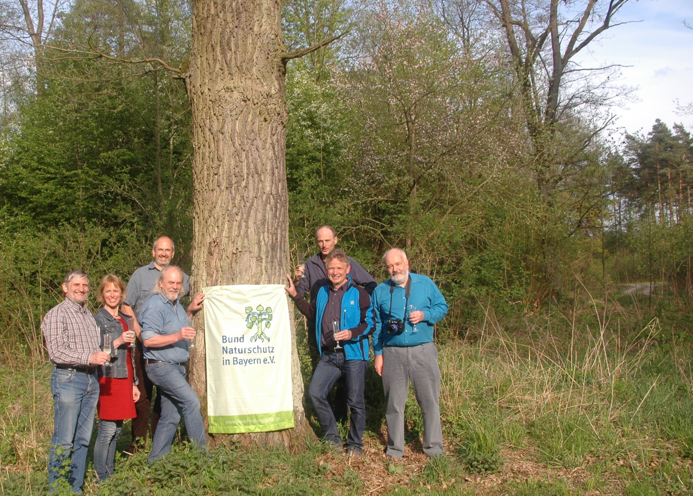 Darunter sind auch die zuletzt wegen kommunaler Bedenken und Querschüsse gefährdeten Flächen im Hauptsmoorwald bei Bamberg wenn auch z.T. kleiner als ursprünglich geplant. Auch die zuletzt gefährdeten Flächen am Brönnhof und Sulzheim bei Schweinfurt wurden als Nationales Naturerbe beschlossen. Der BUND Naturschutz begrüßt die Ausweisungen ausdrücklich. Die Kreisgruppe Bamberg stieß im Wald bereits mit Sekt darauf an (Foto).