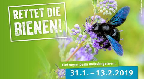 Der BUND Naturschutz ruft dazu auf, das Volksbegehren "Rettet die Bienen und die Artenvielfalt" unterstützen. Zwischen 31. Januar und 13. Februar 2019 müssen sich zehn Prozent aller bayerischen Wähler in den Rathäusern für das Volksbegehren eintragen - das ist fast eine Million Wahlberechtigte.