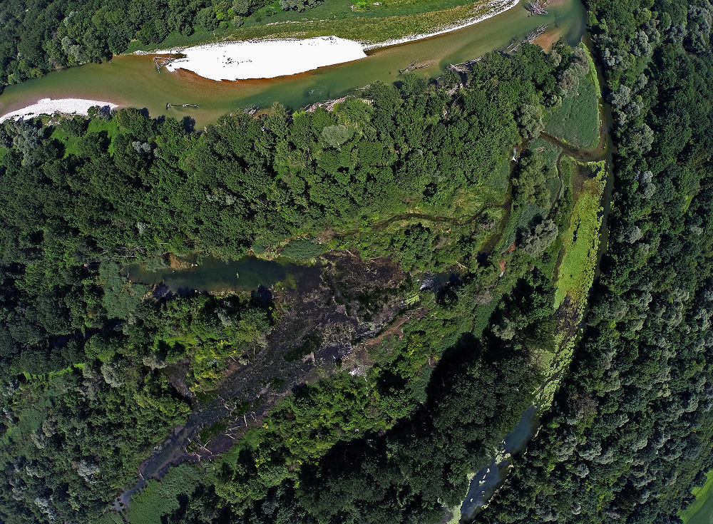 (Bilder aus dem Biberrevier Dorfenmündung, Luftbilder des Biberrevieres an der Mündung der Dorfen in die Isar (W. Willner)