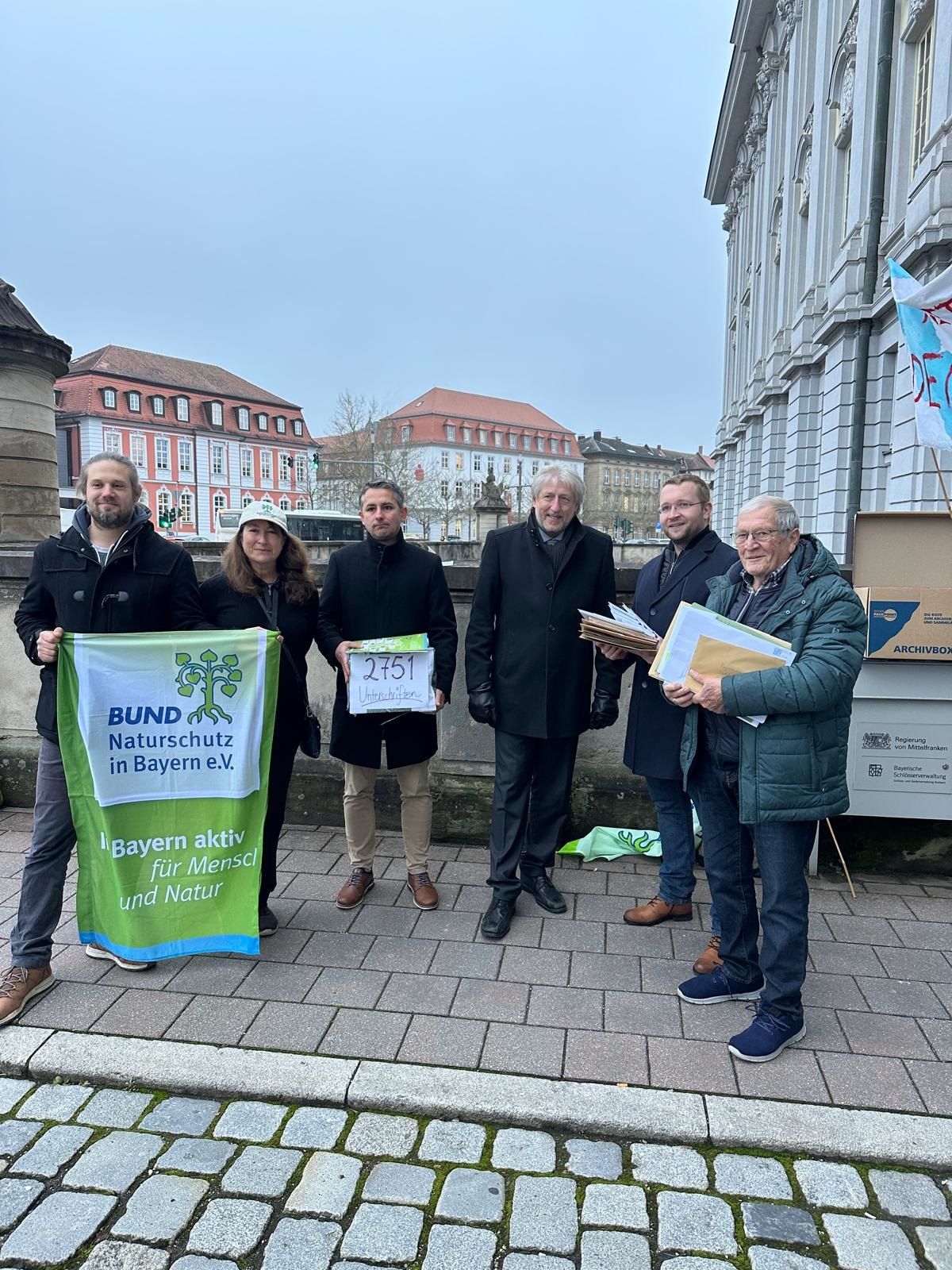 Ein starkes Signal aus der Bevölkerung erreichte heute die Regierung von Mittelfranken: Der BUND Naturschutz (BN) hat am Nachmittag 2.751 Unterschriften gegen den geplanten Ersatzneubau der 380-kV-Hochspannungsleitung (Juraleitung P53, Abschnitt A-Ost) übergeben.