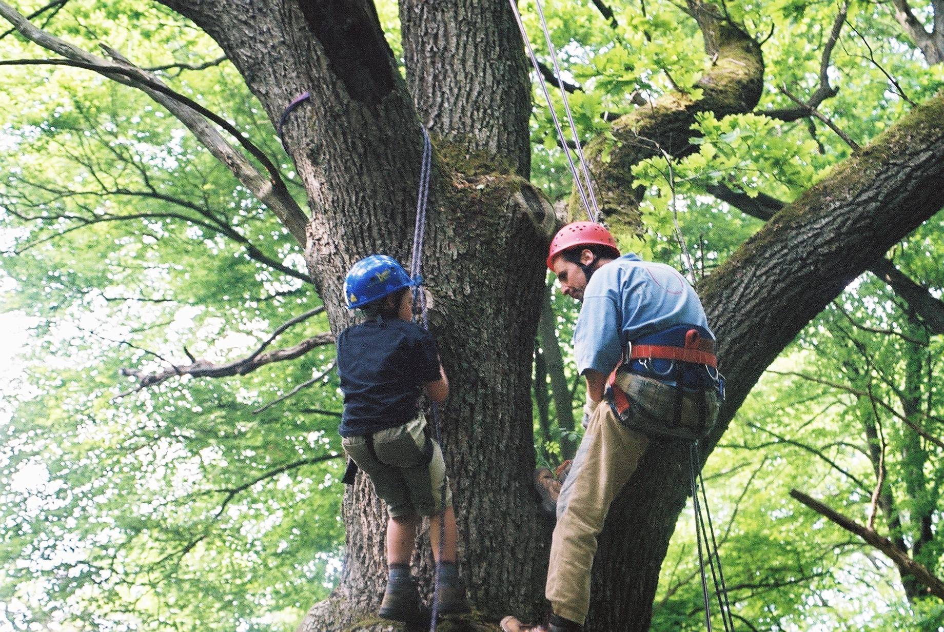 Für Kinder und Jugendliche gibt es dieses Jahr erstmals die Möglichkeit, unter fachkundiger Betreuung der BN-Jugendbildungsstätte Wartaweil mit Helm und Seilen riesige Eichen zu erklettern.