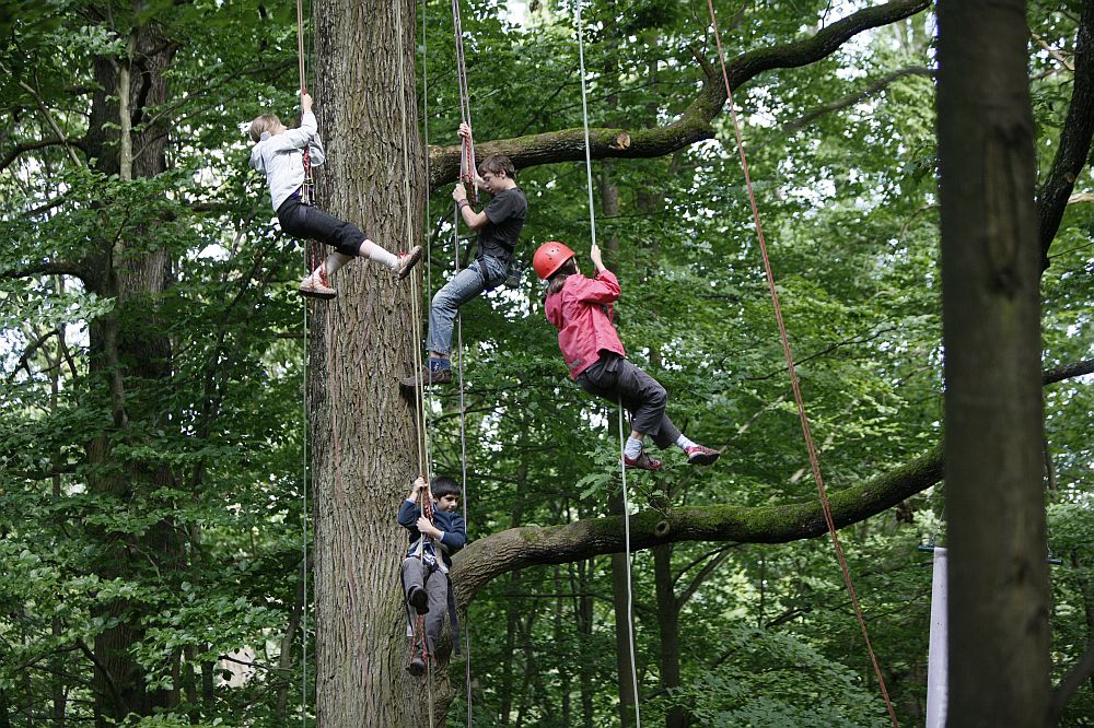 Großes Kinderprogramm: „Leben wie zu Robins Zeiten“ (Kleidung selber nähen, Pfeil und Bogen schnitzen, Märchenzelt) und Baumklettern