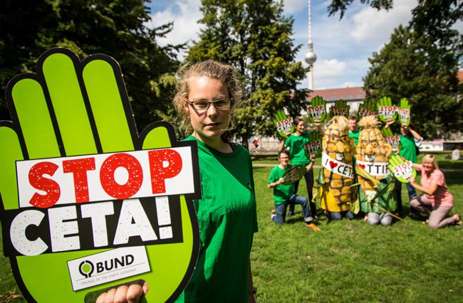 Die EU-Kommission verfolgt eine Freihandelsagenda, die weit über den Abbau von Zöllen etc. hinaus geht. Deshalb darf unsere Kritik an diesen Abkommen auch nicht verstummen. Auch CETA greift tief in die Rechte der Mitgliedsstaaten ein. Entgegen den euphemistischen Verlautbarungen ist kein neuer „Goldstandard“ für tatsächlich faire Handelsabkommen gegenüber Mensch und Umwelt geschaffen worden. Ein ökologisch ausgerichteter und fairer Handel braucht kein CETA. Nötig sind sozial-ökologische Prinzipien und konkrete Anstrengungen für eine Handelspolitik, die das Allgemeinwohl und nicht die Interessen von Industrie und Konzernen in den Mittelpunkt stellt.
