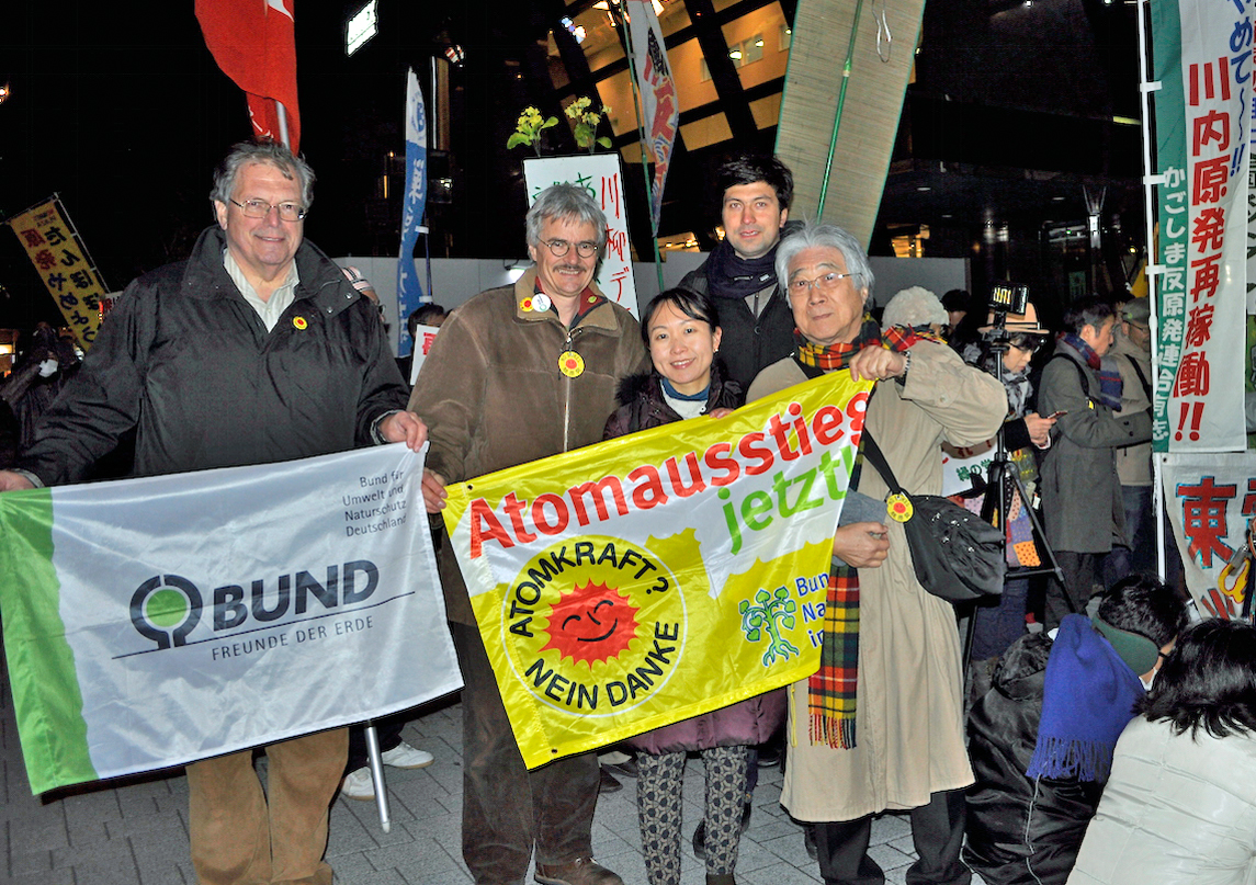Zum Auftakt demonstrierten Hubert Weiger, der Vorsitzende des BUND Naturschutz in Bayern (BN) und des Bundes für Umwelt und Naturschutz Deutschland (BUND), der BN-Landesbeauftragte Richard Mergner und Martin Geilhufe, BN-Referent für politische Kommunikation, gemeinsam mit mehreren Hundert Aktivisten von Friends of the Earth Japan vor der Zentrale des japanischen Atomkraftwerksbetreibers TEPCO in Tokyo. Zudem hielten die drei BN-Vertreter einen Vortrag im japanischen Abgeordnetenhaus.