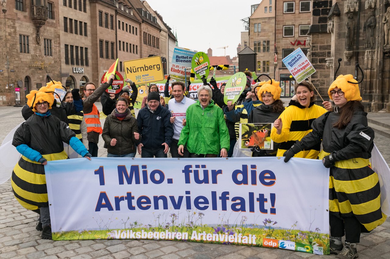Das Volksbegehren ist ein Mittel der direkten Demokratie. Es ermöglicht Bürgerinnen und Bürgern die Einbringung eines Gesetzesentwurfs in den Bayerischen Landtag. Die erste Hürde ist überwunden: Knapp 100.000 Menschen haben in der ersten Zulassungsphase für das Volksbegehren unterschrieben, im Oktober wurde es vom Innenministerium zugelassen. Jetzt müssen sich vom 31. Januar 2019 bis zum 13. Februar 2019 eine Million Wahlberechtigte persönlich in den Rathäusern in Listen eintragen, um das Volksbegehren Artenvielfalt erfolgreich zu machen. Online ist dies nicht möglich. Zur Eintragung muss der gültige Ausweis vorgelegt werden. Zum Trägerkreis des Volksbegehrens Artenvielfalt – Rettet die Bienen! gehören die Ökologisch-Demokratische Partei Bayern (ÖDP), der Landesbund für Vogelschutz in Bayern (LBV), das Bündnis 90/Die Grünen Bayern und der BUND Naturschutz in Bayern. Ein breites gesellschaftliches Bündnis von mehr als 200 Organisationen, Unternehmen, Verbänden und Parteien unterstützen diese direktdemokratische Initiative für ein neues Naturschutzgesetz in Bayern.
