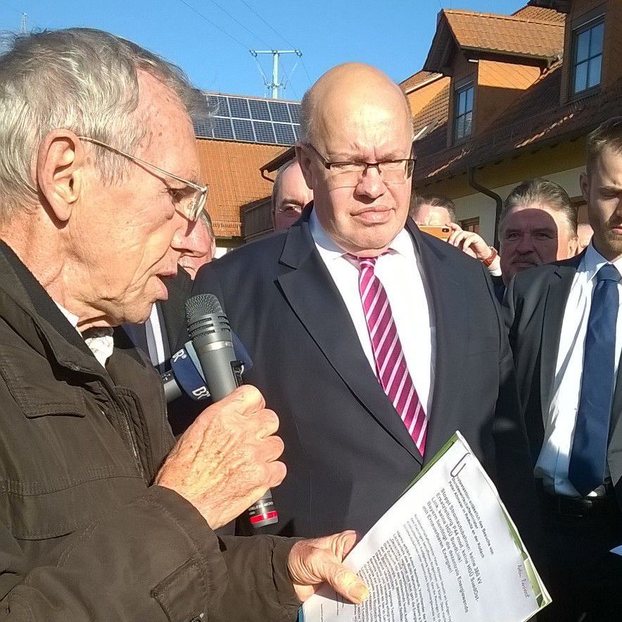 Bundeswirtschaftsminister Peter Altmaier besucht am heutigen Freitag die von den Planungen betroffenen Bürgerinnen und Bürger. Diese machen bei einer eindrucksvollen Kundgebung deutlich, dass die Planungen für die Stromautobahnen einer dezentralen Bürgerenergiewende im Weg stehen.
