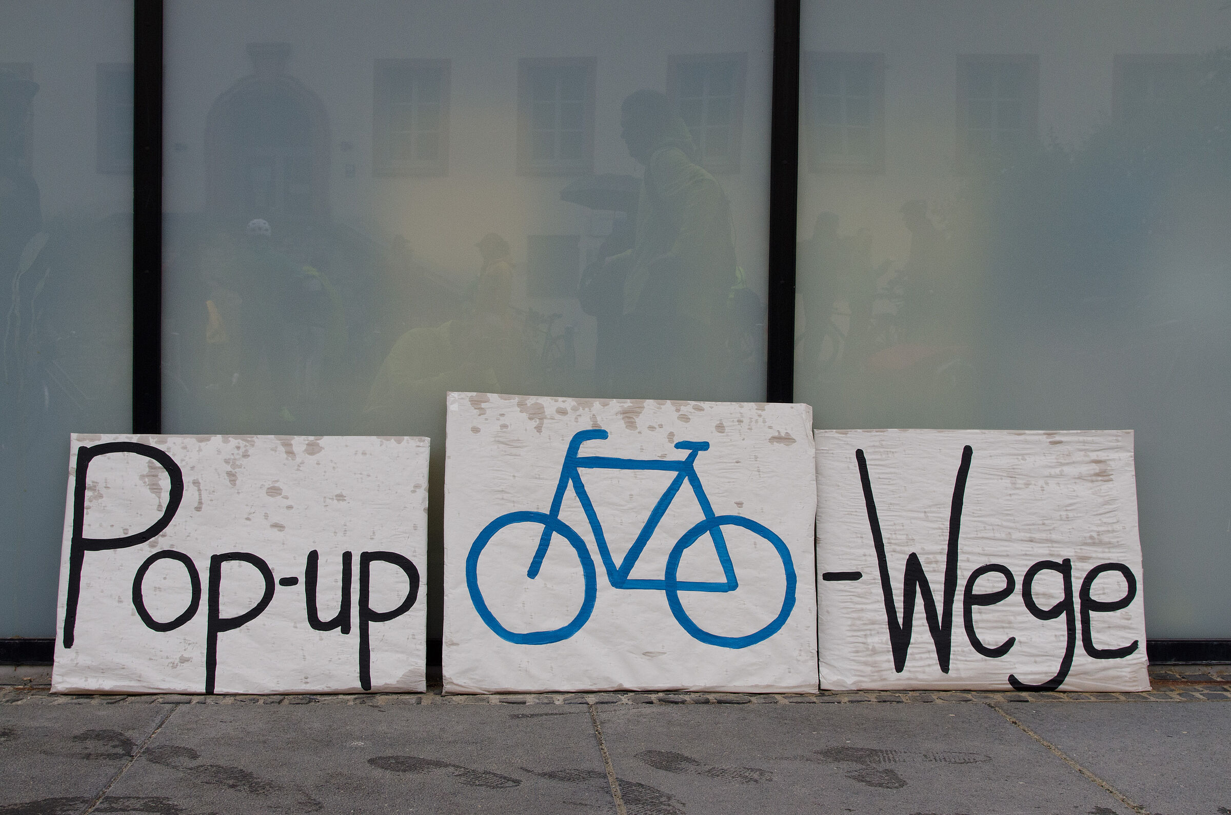 In Bayern machten Städte wie München, Nürnberg, Fürth oder Ingolstadt in den vergangenen Monaten mit Pop-Up-Radwegen, Sommerstraßen oder Schanigärten zumindest temporär mehr Platz für Fuß- und Radverkehr. Unverständlicherweise wurden selbst erfolgreiche Pop-Up-Radwege in diesen Städten nach einer dreimonatigen Testphase auf dem Höhepunkt der zweiten Corona-Welle wieder abgebaut. Dass es auch anders geht, zeigt das Beispiel Berlin: Dort wurden inzwischen erste Pop-Up-Radwege in reguläre Radwege umgewandelt.