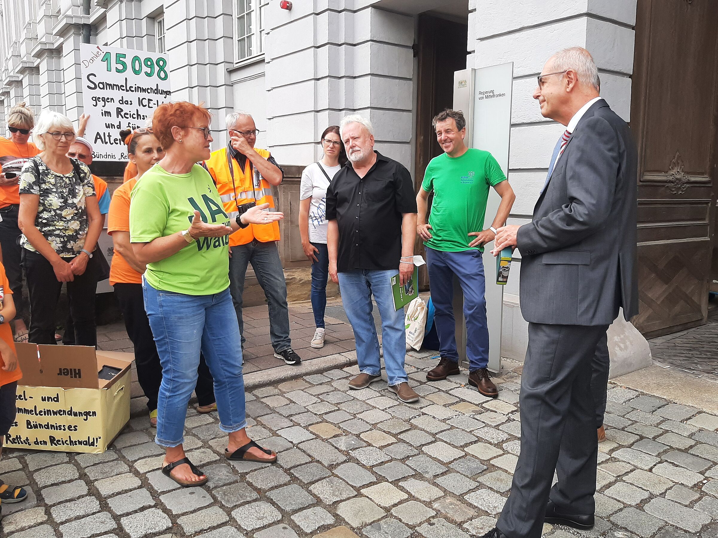 Die Vertreter*innen des Bündnisses, darunter Mitglieder des BUND Naturschutz in Bayern e.V., der Bürgerinitiativen Harrlach und Röthenbach bei St. Wolfgang und des Bündnisses Feucht übergaben die Sammeleinwendungen heute (29. Juni) der Regierung von Mittelfranken und wurden dabei in Ansbach von Regierungspräsident Dr. Thomas Bauer empfangen. Dabei konnte die Abordnung aus BN, BIs und Verbänden ihre Position kurz erläutern.