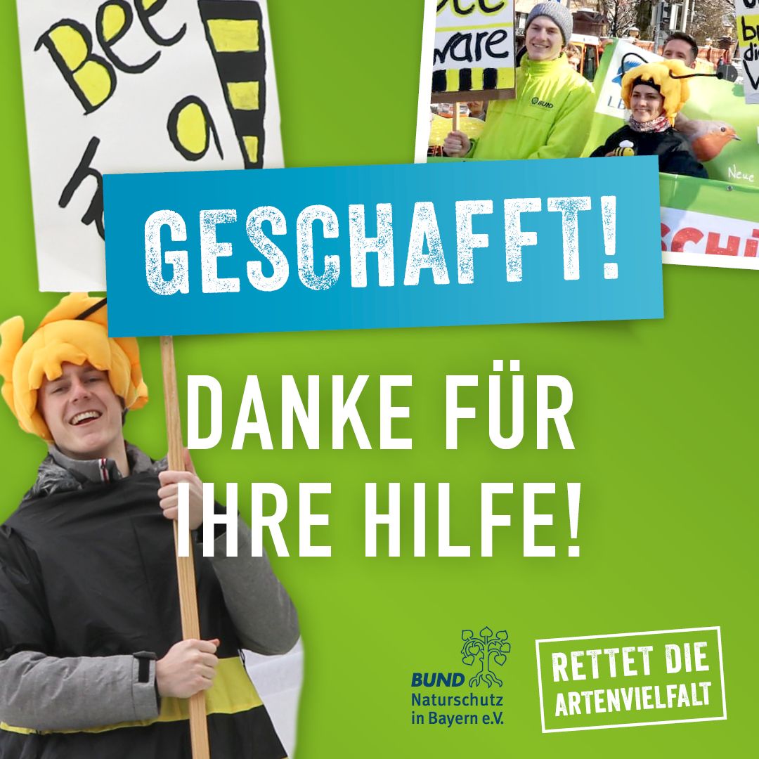 Möglich war die hohe Bürgerbeteiligung durch den unermüdlichen Einsatz vieler ehrenamtlich Aktiver, die sich bei Schnee und Regen als Rathauslotsen, beim Verteilen von Infomaterial, als Bienen-Botschafter zuhause, im Bekanntenkreis, am Arbeitsplatz und auf der Straße für Bayerns Artenvielfalt eingesetzt haben. Danke an alle für dieses großartige Engagement!