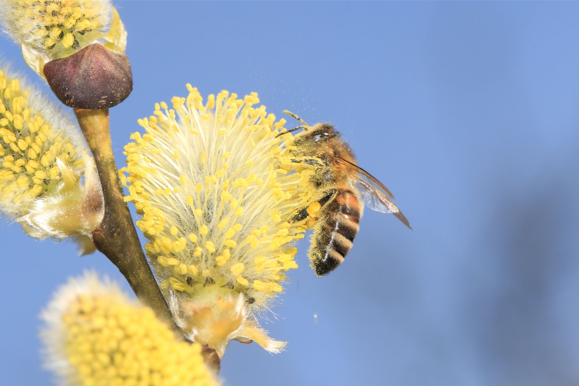 Trotz der aktuell eher kühlen Temperaturen sind schon etliche Insekten unterwegs: erste Wildbienen, Honigbienen, aber auch Schmetterlinge wie Zitronenfalter oder Kleiner Fuchs, die als Schmetterling überwintert haben. „Sie sind nach dem Winter geschwächt und dringend auf jede Nahrungsquelle angewiesen“, erklärt die Artenschutzreferentin beim BUND Naturschutz, Christine Margraf. Fast 60 Wildbienenarten besuchen in Süddeutschland blühende Weidenkätzen, um dort Pollen zu sammeln. Davon sind zehn Arten ausschließlich auf Weiden angewiesen. Im Jahresverlauf werden die Weidenarten von über 1000 Insektenarten genutzt.