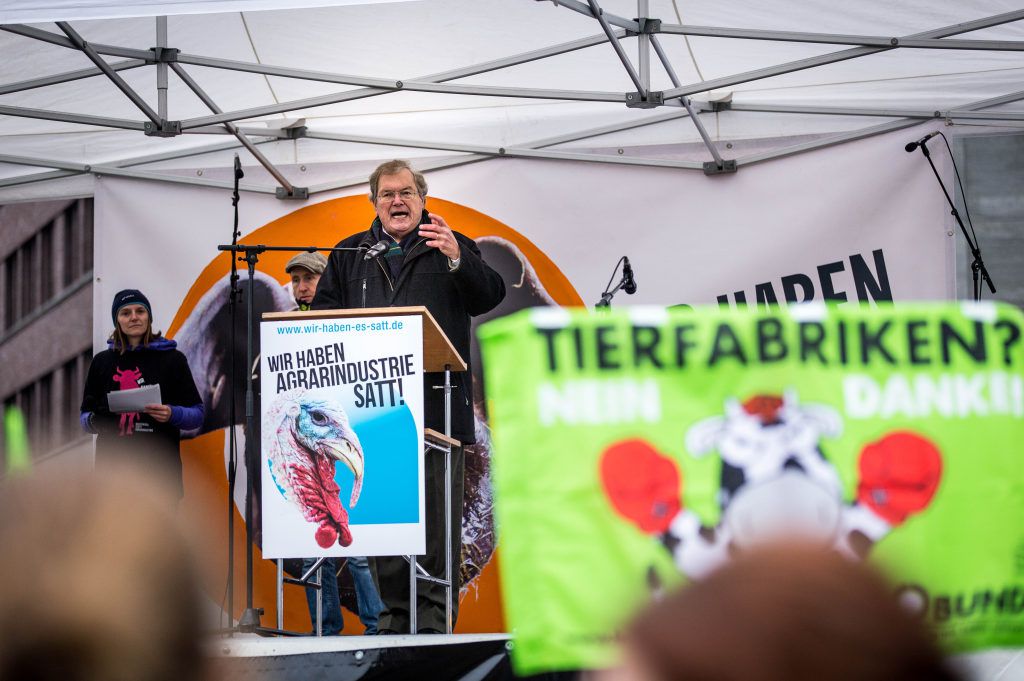 „Das Jahr 2017 ist entscheidend, um Bauernhöfe gegenüber Agrarfabriken besser zu stellen. Die EU-Subventionen müssen konsequent in Richtung bäuerliche Landwirtschaft, umweltverträgliche Produktion und artgerechte Tierhaltung ausgerichtet werden“, sagte Hubert Weiger, Landesvorsitzender des BUND Naturschutz, auf der Demonstration.