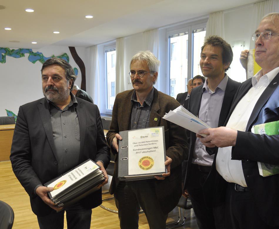Um das Abschalten der beiden Atomreaktoren Gundremmingen Block B und Block C schon Ende 2017 zu erreichen, übergaben der BUND Naturschutz in Bayern e.V., der BUND Baden-Württemberg e.V. und das FORUM Gemeinsam gegen das Zwischenlager und für eine verantwortbare Energiepolitik e.V. mehr als zehntausend Petitionen. Bereits im Sommer hatten die Anti-Atom-Organisationen ausgestrahlt und das Münchner Umweltinstitut mehrere Zehntausend Unterschriften übergeben.