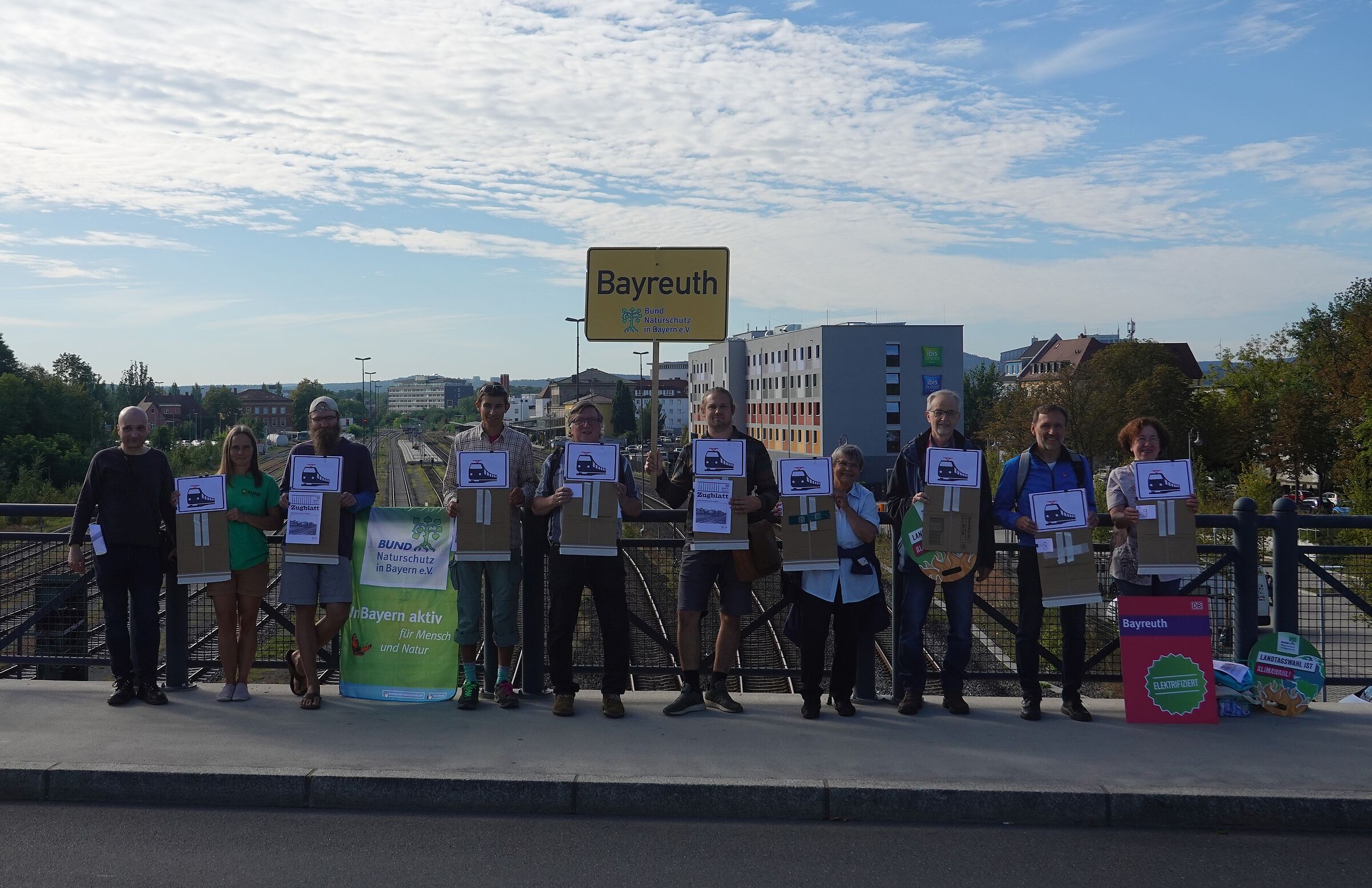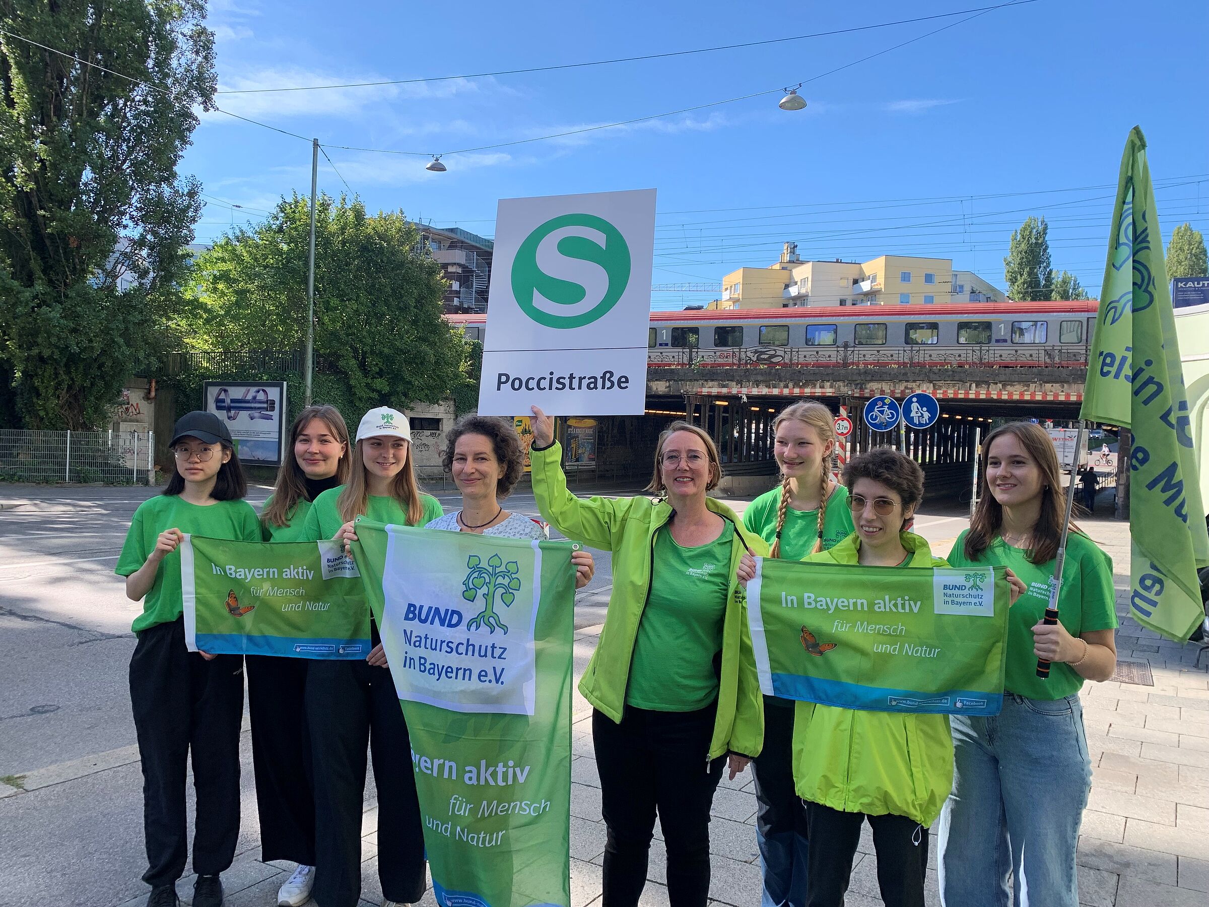 Aktionen gab es in München (Oberbayern), Günzburg (Schwaben), Viechtach (Niederbayern), Klardorf (Oberpfalz), Dinkelsbühl (Mittelfranken), Bayreuth (Oberfranken) und Stetten (Unterfranken). Wegen der Kostenexplosion in München können wichtige Schienenprojekte in ganz Bayern nicht umgesetzt werden. "So kann eine Verkehrswende nicht funktionieren!“, bedauert der BN-Vorsitzende Richard Mergner. „Wir kritisieren, dass die Bayerische Staatsregierung trotz Skandalen, Kostenexplosionen in ungeheurem Ausmaß sowie einem gesprengten Zeitplan immer noch sklavisch an der zweiten S‑Bahn‑Stammstrecke festhält. Zum Wohle aller Menschen in ganz Bayern, muss jetzt die Notbremse gezogen und der kostensparende und schneller realisierbare Alternativvorschlag des BUND Naturschutz umgesetzt werden!“