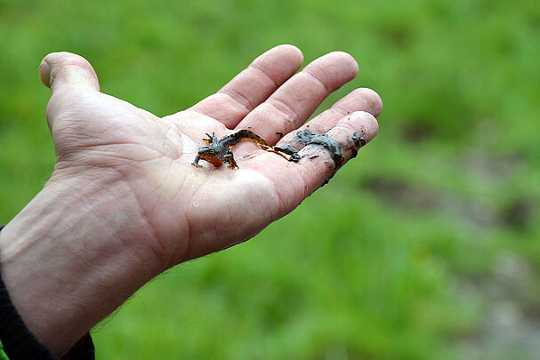 - Gefährliche Lebensweise: Auf ihren alljährlichen kilometerlangen Wanderungen zu den Laichplätzen sind viele Amphibien durch Landschaftszerschneidung und Straßenbau großen Gefahren ausgesetzt.