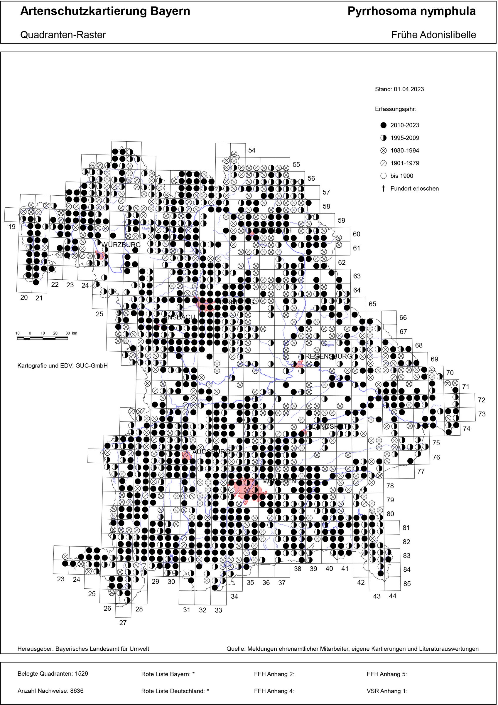 Diese Libellenart ist in Bayern weit verbreitet und kommt häufig vor. Sie besiedelt eine Vielzahl, bevorzugt kleine Gewässertypen. Vorteilhaft ist außerdem eine gewässernahe Baum-, Strauch- oder Staudenvegetation. Die Frühe Adonislibelle (Pyrrhosoma nymphula) fliegt nur wenig und meist nur kurze Strecken, die Paarung dauert meist nur 15 Minuten. Die Weibchen stechen ihre Eier in Pflanzenstengel und tauchen dabei auch unter Wasser. Es wurde beobachtet, dass sie bis zu 600 Eier ablegen und 40 Minuten unter Wasser bleiben können. Häufig tauchen auch die angekoppelten Männchen mit unter. Sie ist eine der am frühesten fliegenden Kleinlibellen Bayerns.