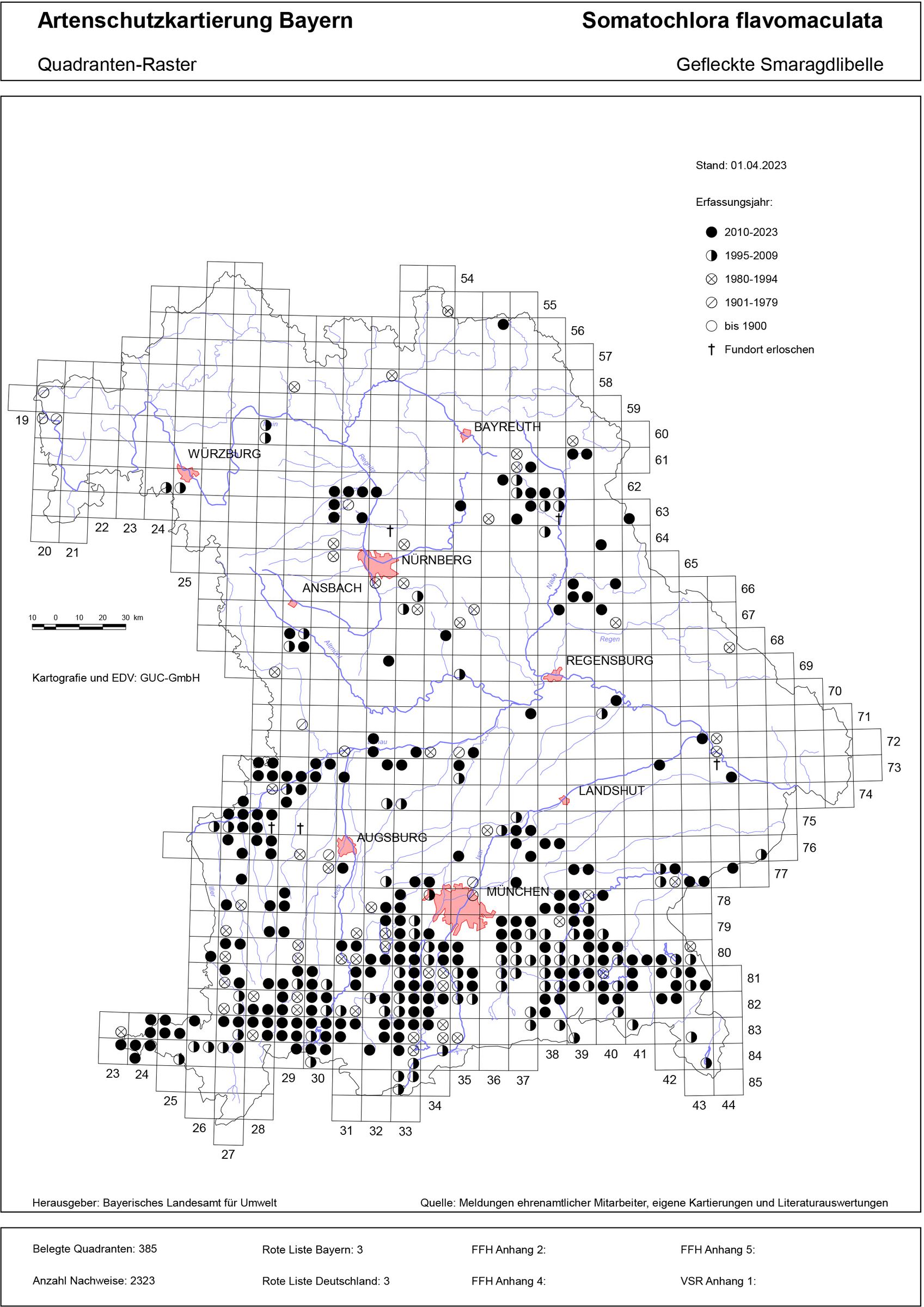 Laut aktueller Roter Liste Bayern (2018) gilt die Gefleckte Smaragdlibelle als "gefährdet" (3), für ihren Erhalt müssen die Lebensraumverluste in den Niedermooren gestoppt und dort Renaturierungs- und Wiedervernässungsmaßnahmen ergriffen werden .
